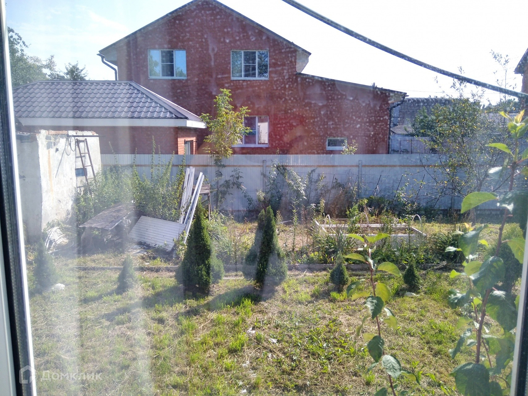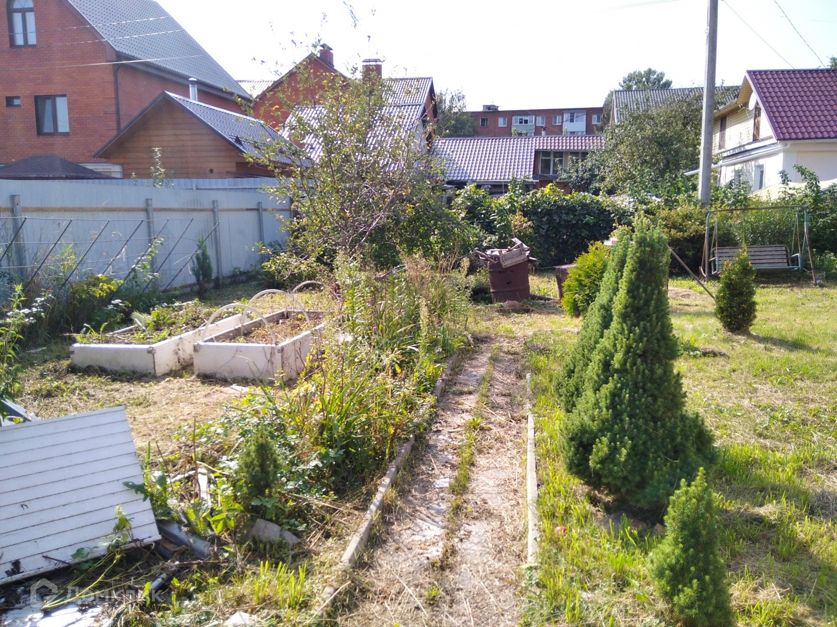 Участок правильной формы, ухожен. Есть кирпичный сарай, зона отдыха, плодовые деревья и кустарники.