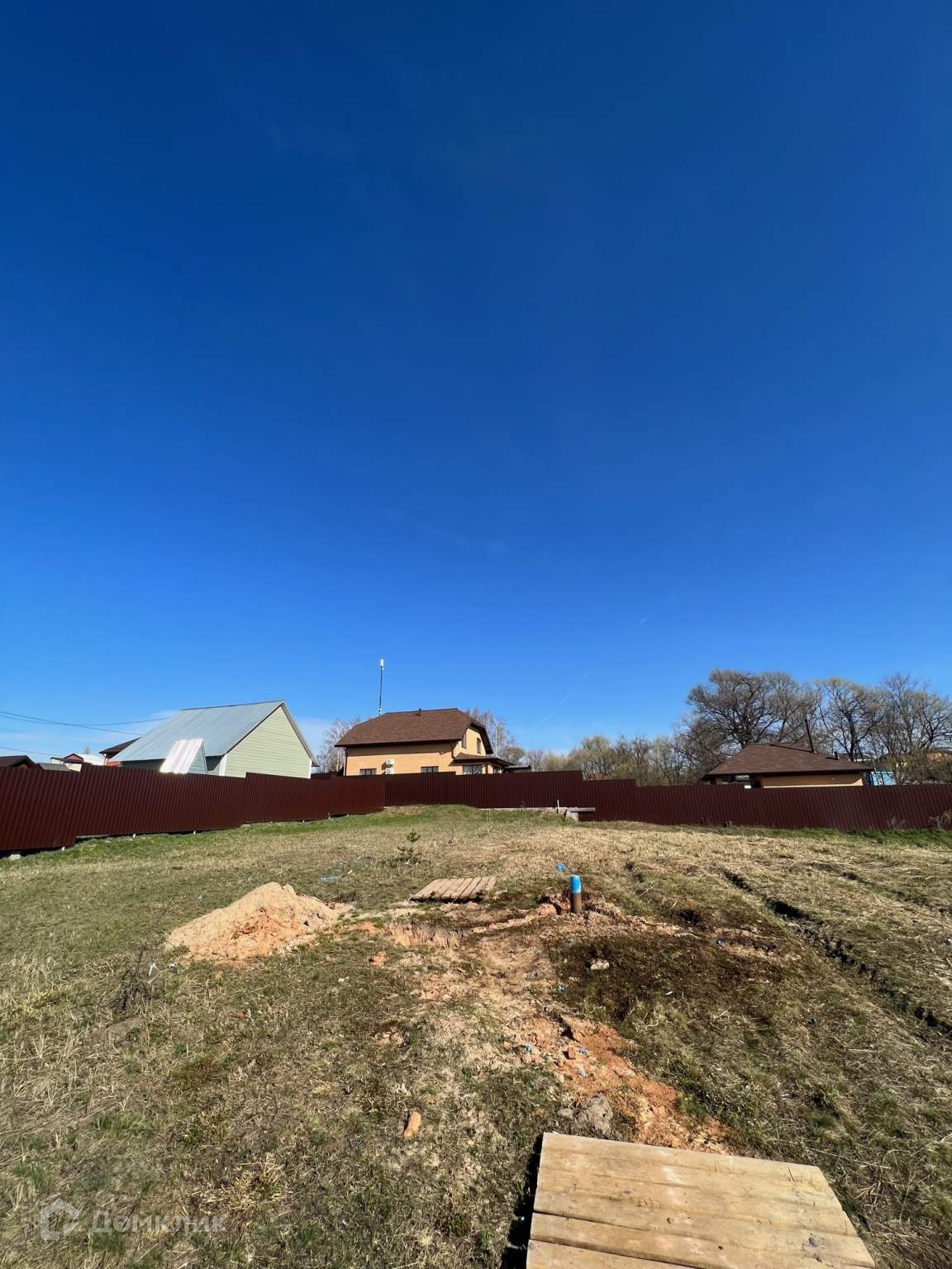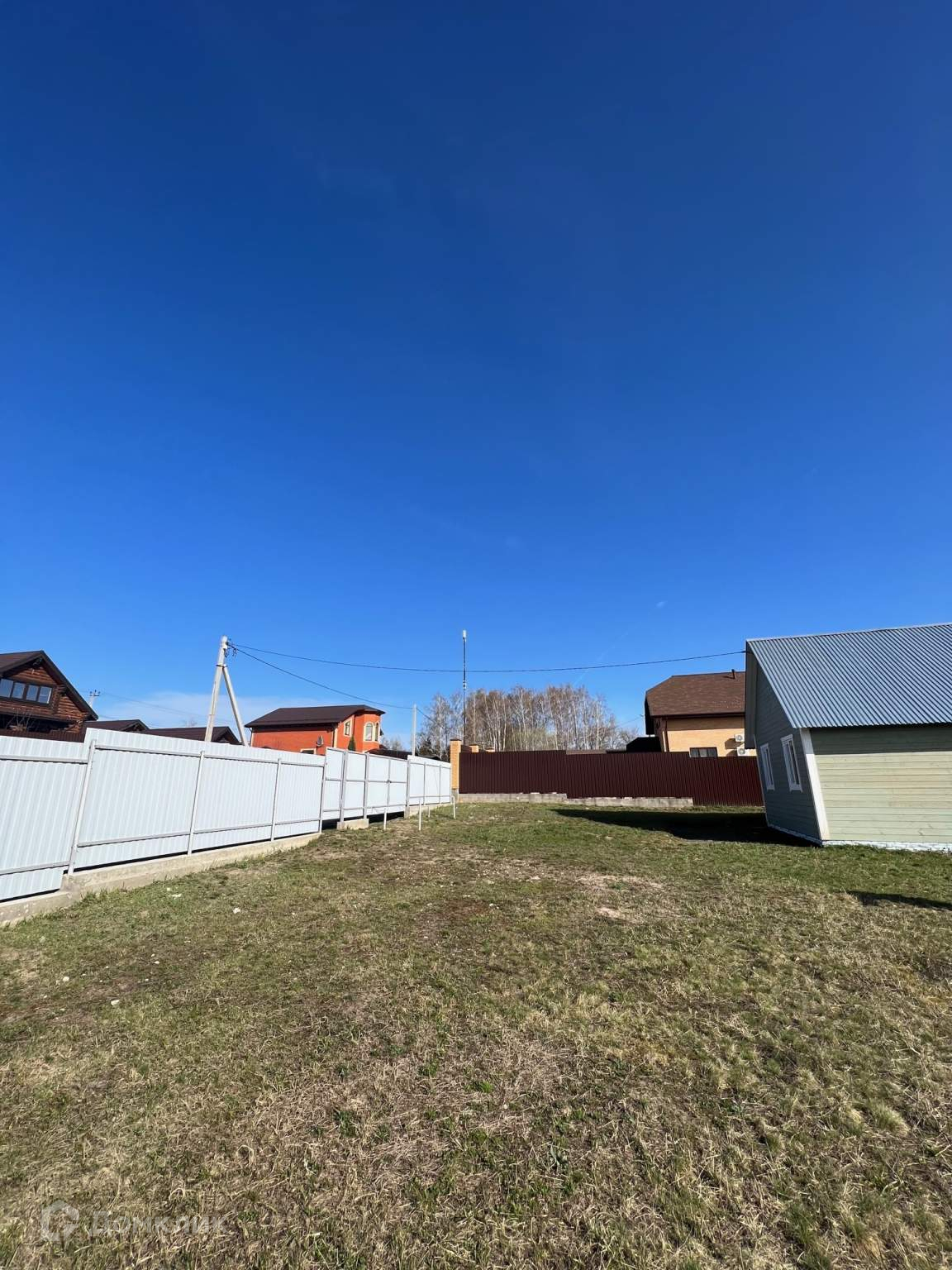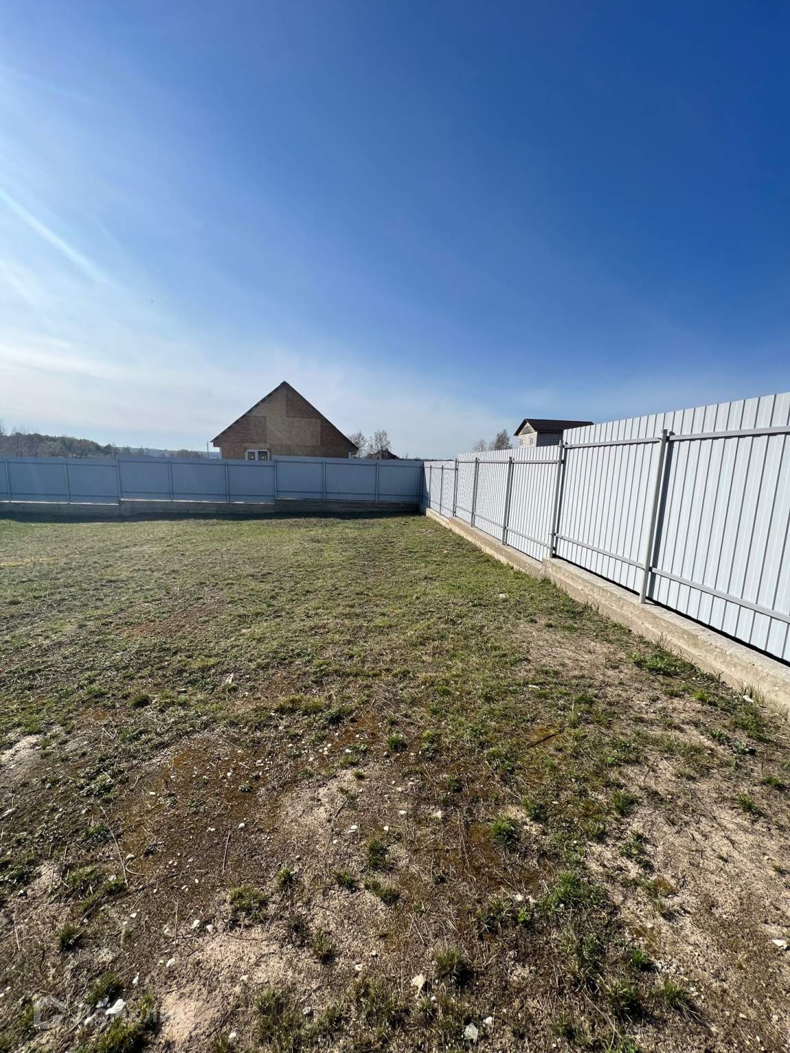 Возможна Прописка. Установлен забор по периметру из проф.настила, въездные ворота и калитка. Фасадная часть забора и левая сторона отлиты бетоном.