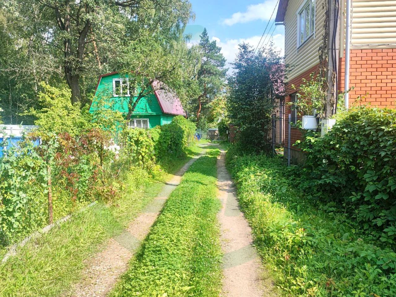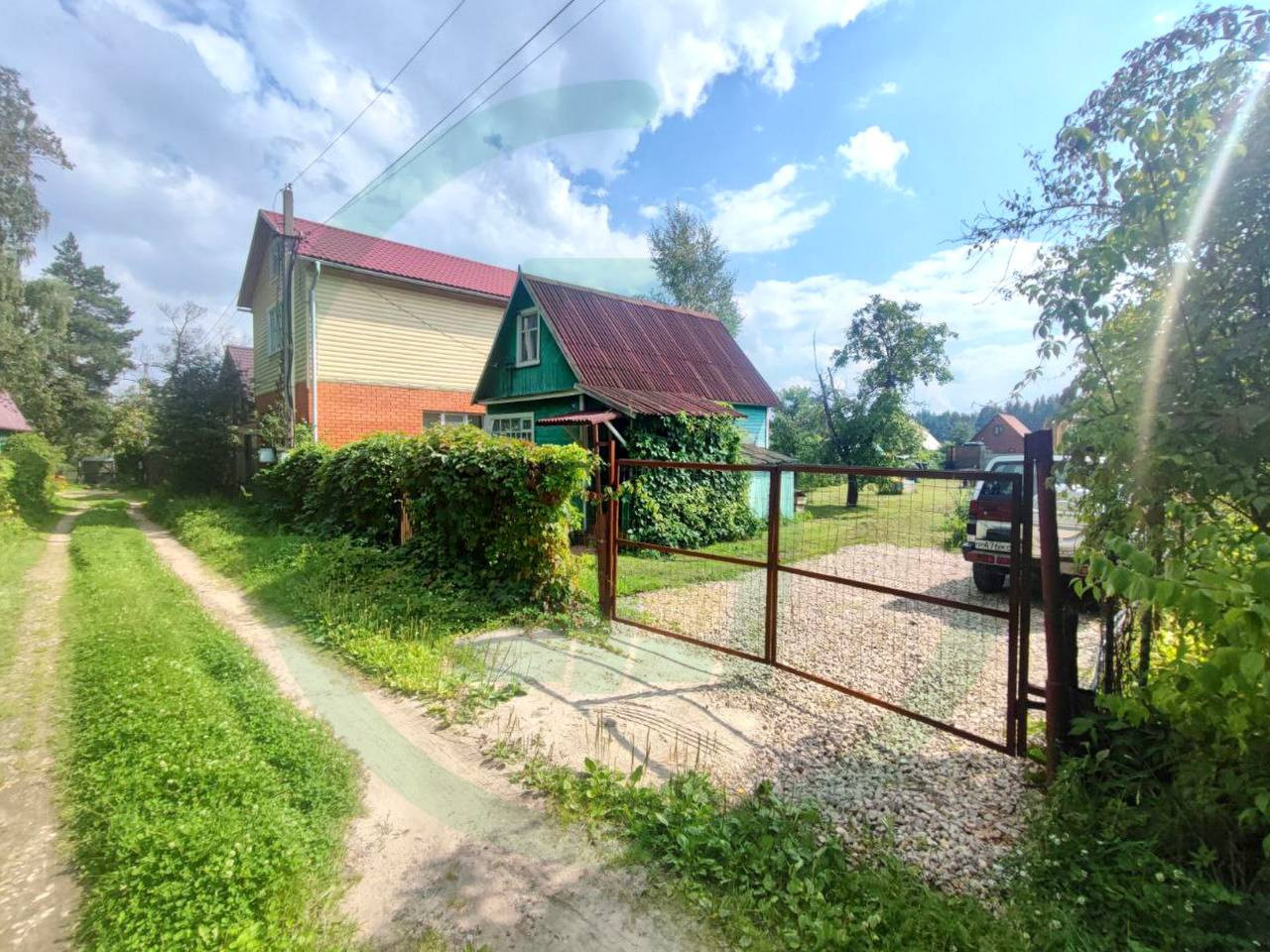 Участок правильной формы, ровный, частично огорожен забором, есть калитка и распашные ворота, отсыпана щебнем парковочная зона минимум на два авто. На участке расположен небольшой садовый дом. Построен по каркасно-щитовой технологии на ленточном фундаменте, в будущем его можно использовать как гостевой.