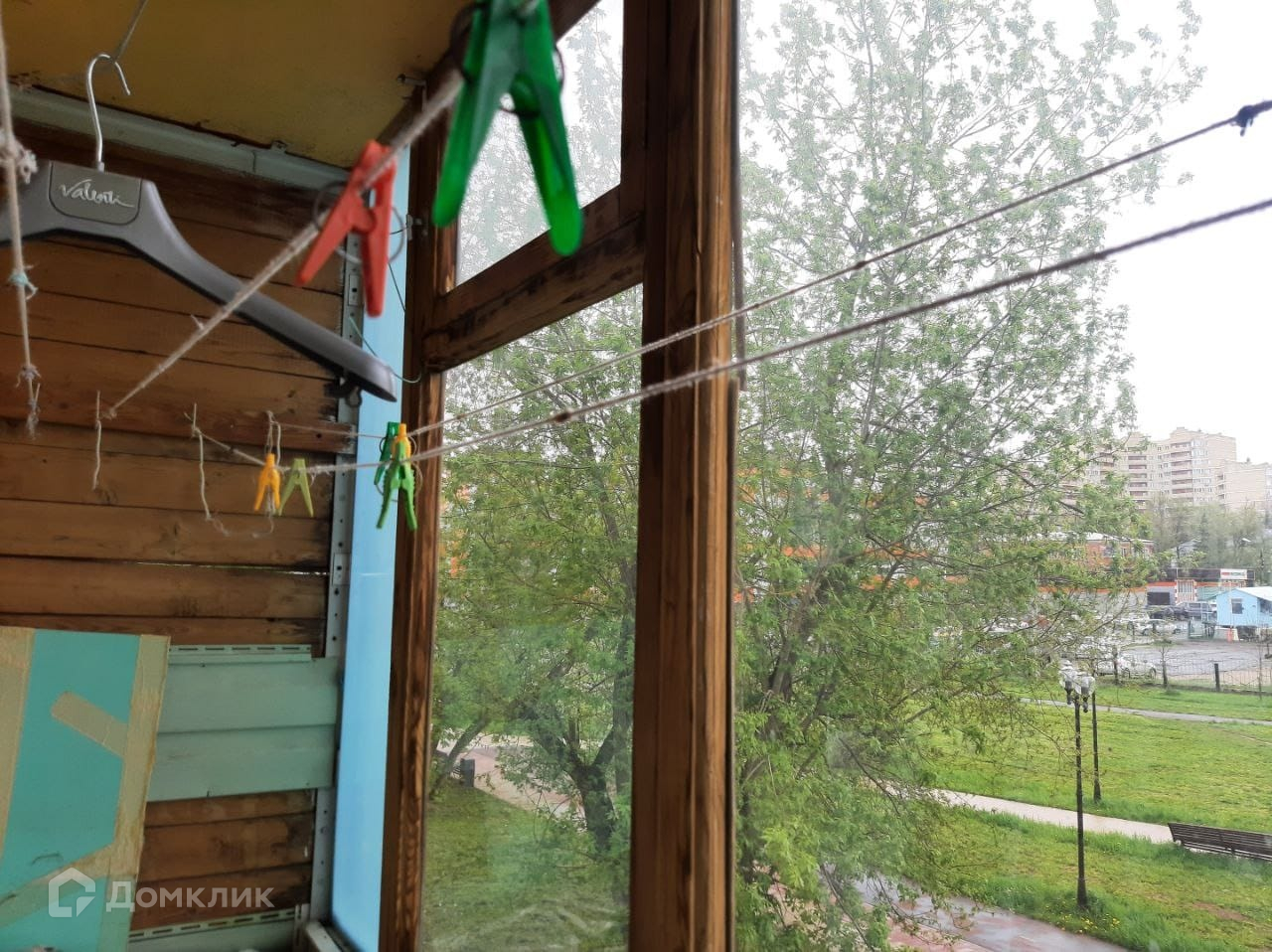 Балкон остеклëн деревом.