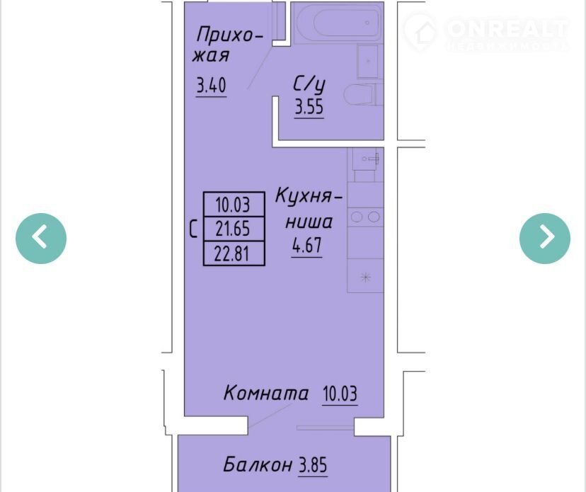 Общая площадь 22.8 м2