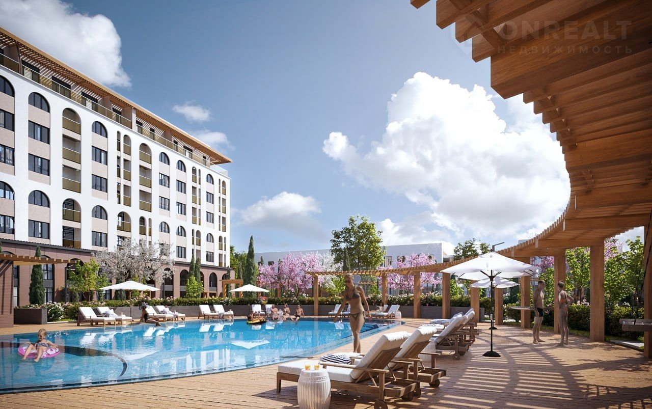 — Открытый бассейн с зонами отдыха и шезлонгами;