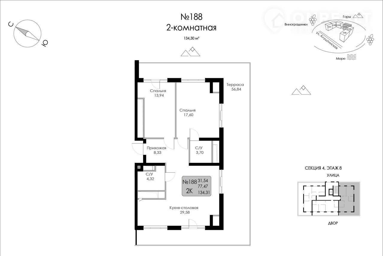 2-комнатная квартира, 134.3 м2, этаж 8 / 8, на продажу в Судаке