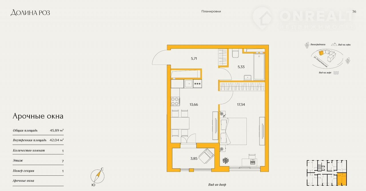 1-комнатная квартира, 50.1 м2, этаж 5 / 8, на продажу в Судаке