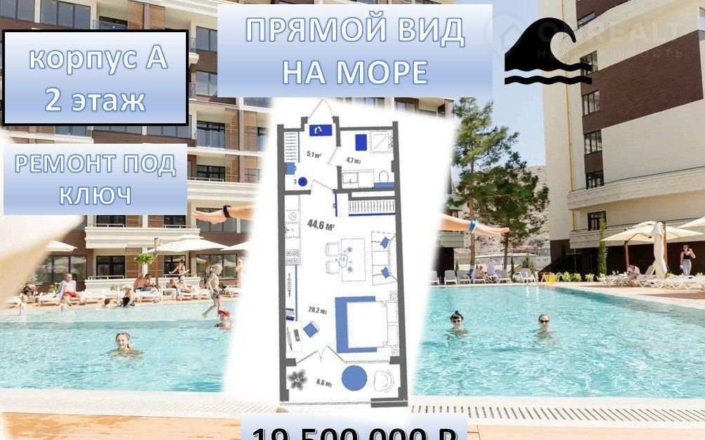 6) Атлас, корпус А, 4 этаж, 44м2, вид на море, ремонт под ключ, 21,5 млн