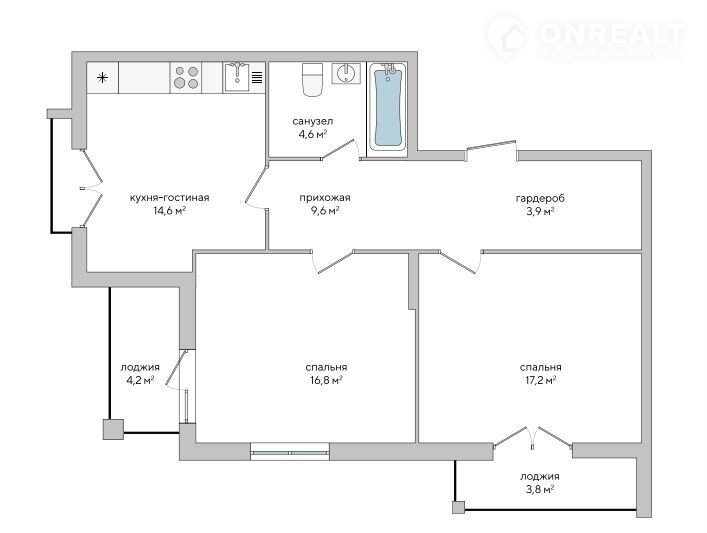 Балкон, лоджия 1 лоджия