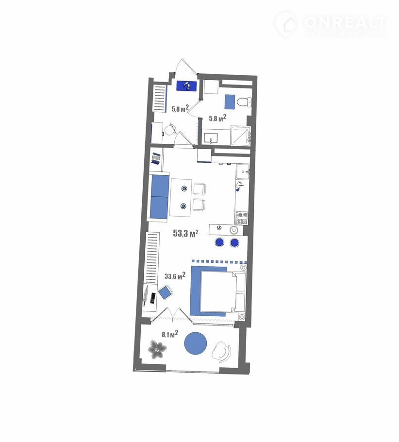 Общая площадь 53.3 м2