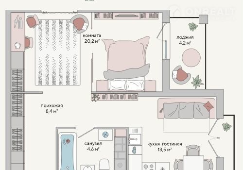 Жилая площадь 20.2 м2