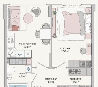 Площадь кухни 16.8 м2