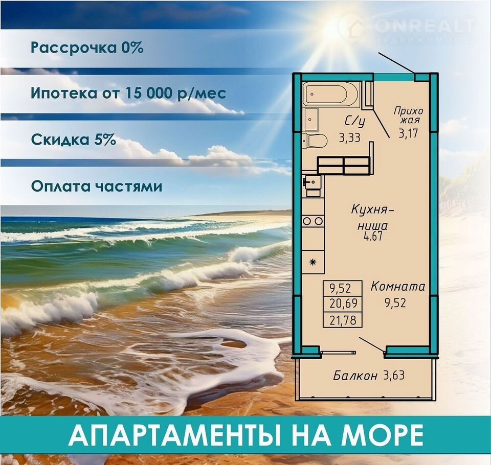 15 мин до моря пешком, планировки от 19 кв.м.