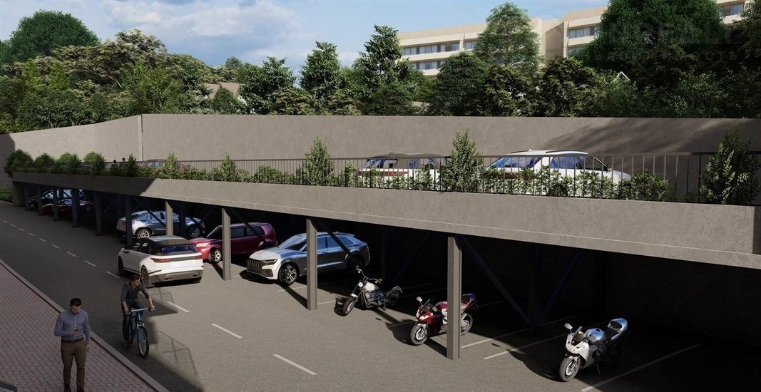 На территории предусмотрена открытая многоуровневая парковка