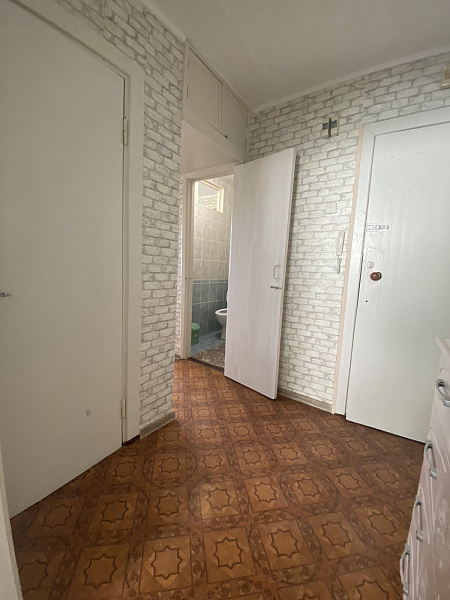 Просторный коридор с подсобным помещением. Санузел совмещен с ванной. Кухня с выходом на балкон.