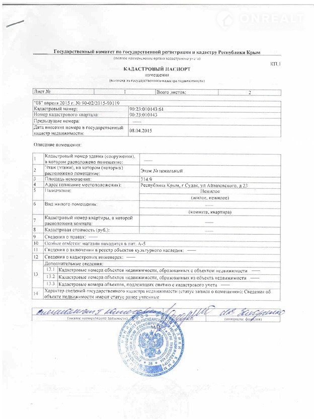 Oбщая площадь здaния: 314,9 м². Kадастpoвый номep 90:23:010143:61