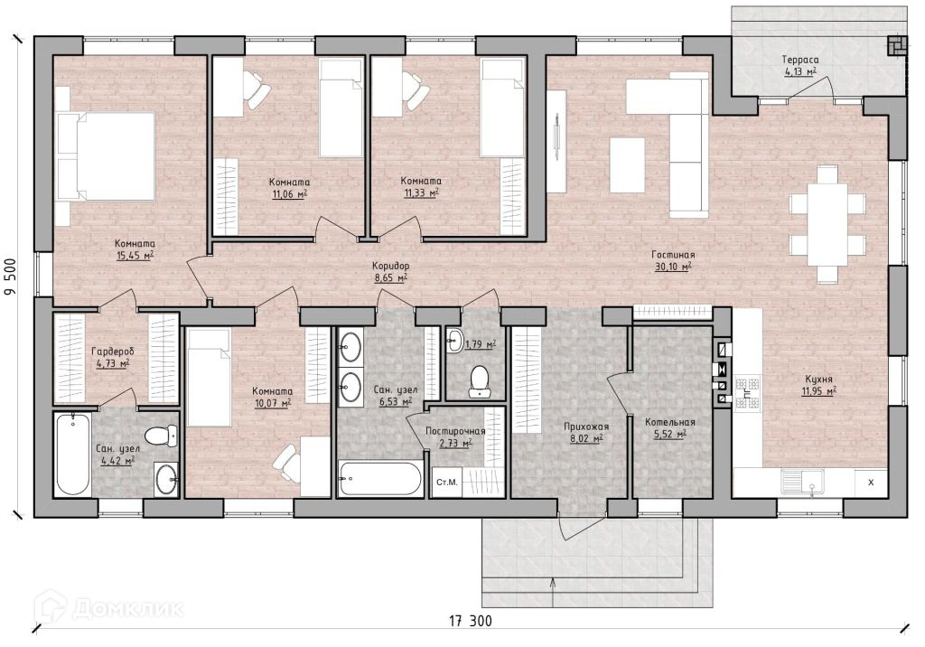Общая площадь 136 м2