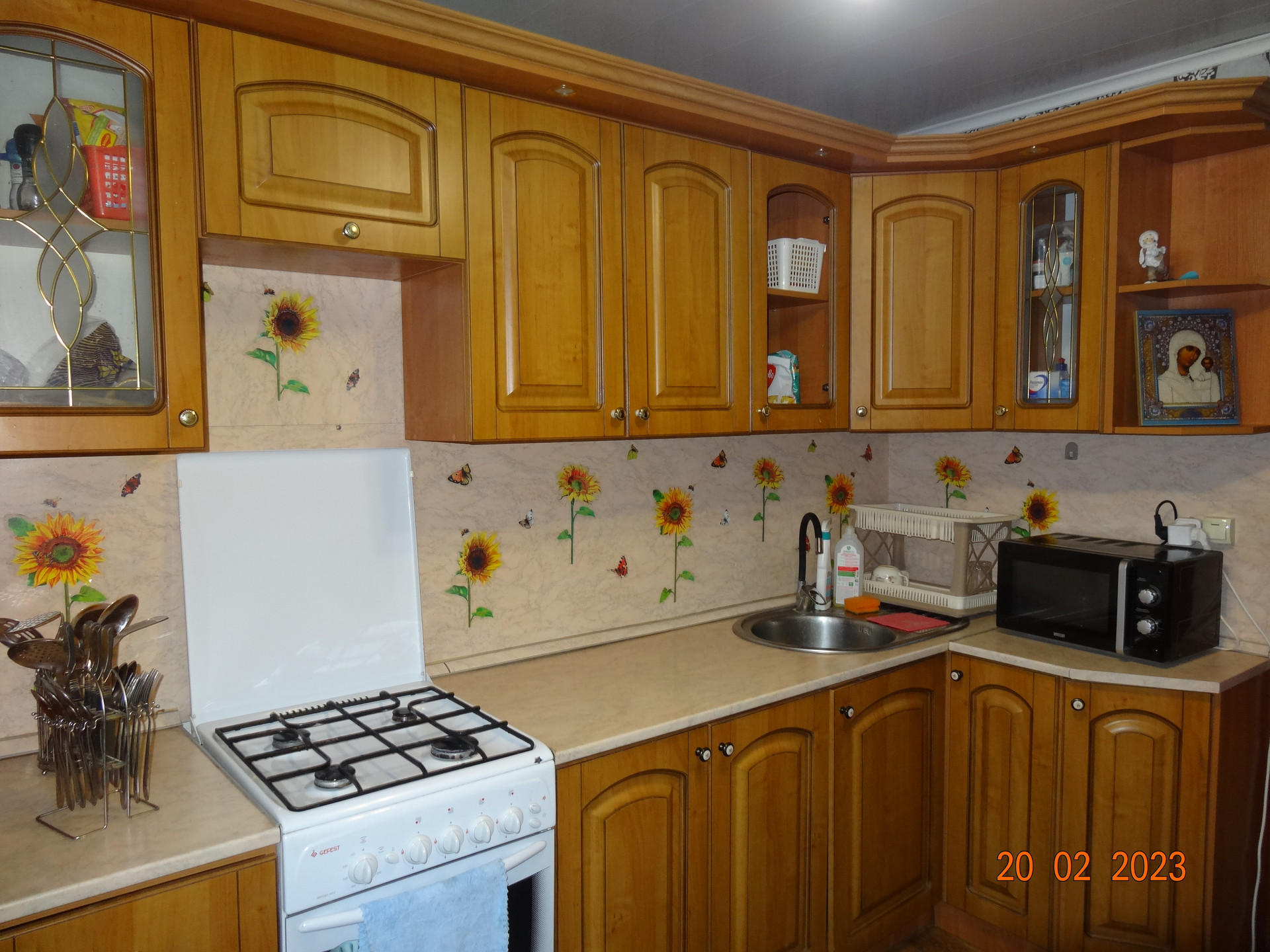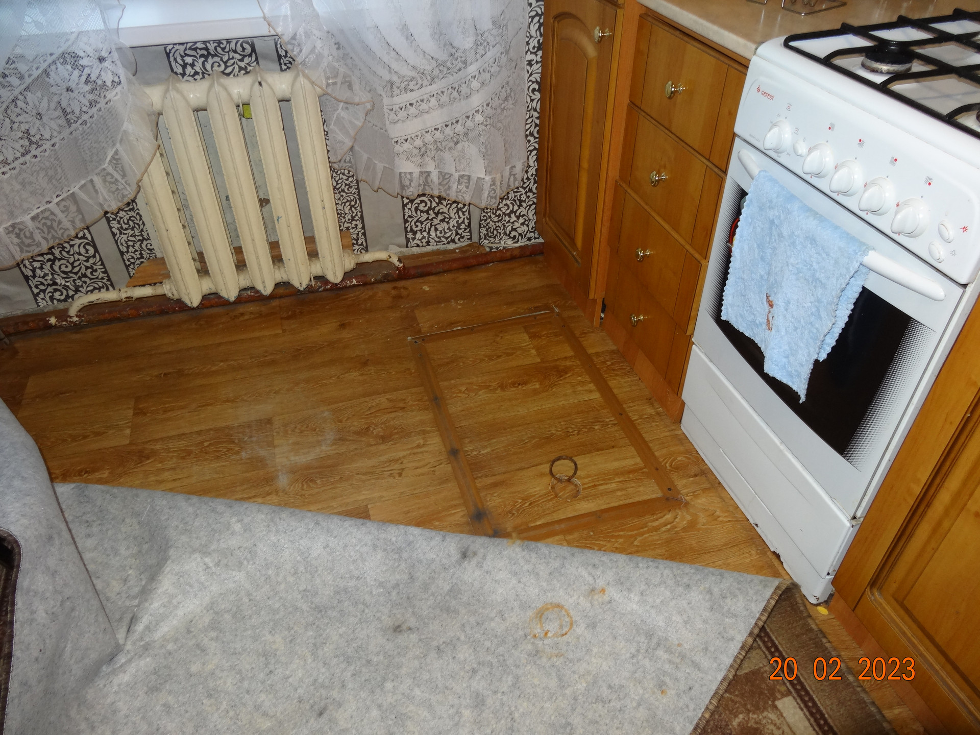 Кухня имеет дополнительное подпольное помещение. Очень удобное для хранения заготовок на зиму и продуктов. Встроенный кухонный гарнитур, водонагреватель остаются.