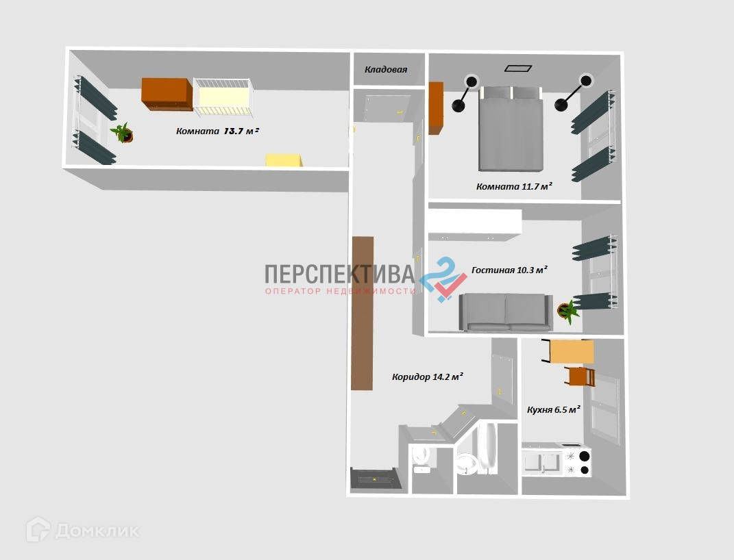 Жилая площадь 35.7 м2