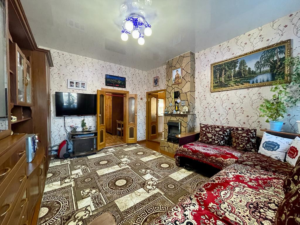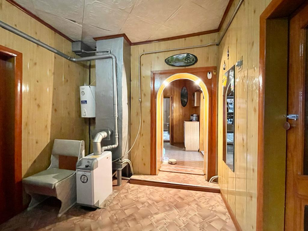 Дом шлакозаливной, полностью благоустроенный (4 комнаты и кухня, ванная комната с сан/узлом). Отопление - газовое, имеется действующий камин, сохранена печь (голландка), центральное водоснабжение.