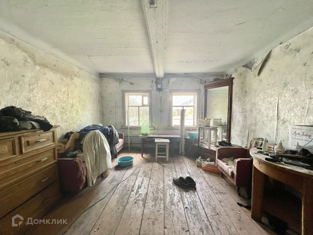 Дом площадью - 41.4 кв.м., требует косметического ремонта. Отопление - центральное, есть возможность подключить газ, вода - скважина (не заведена в дом).