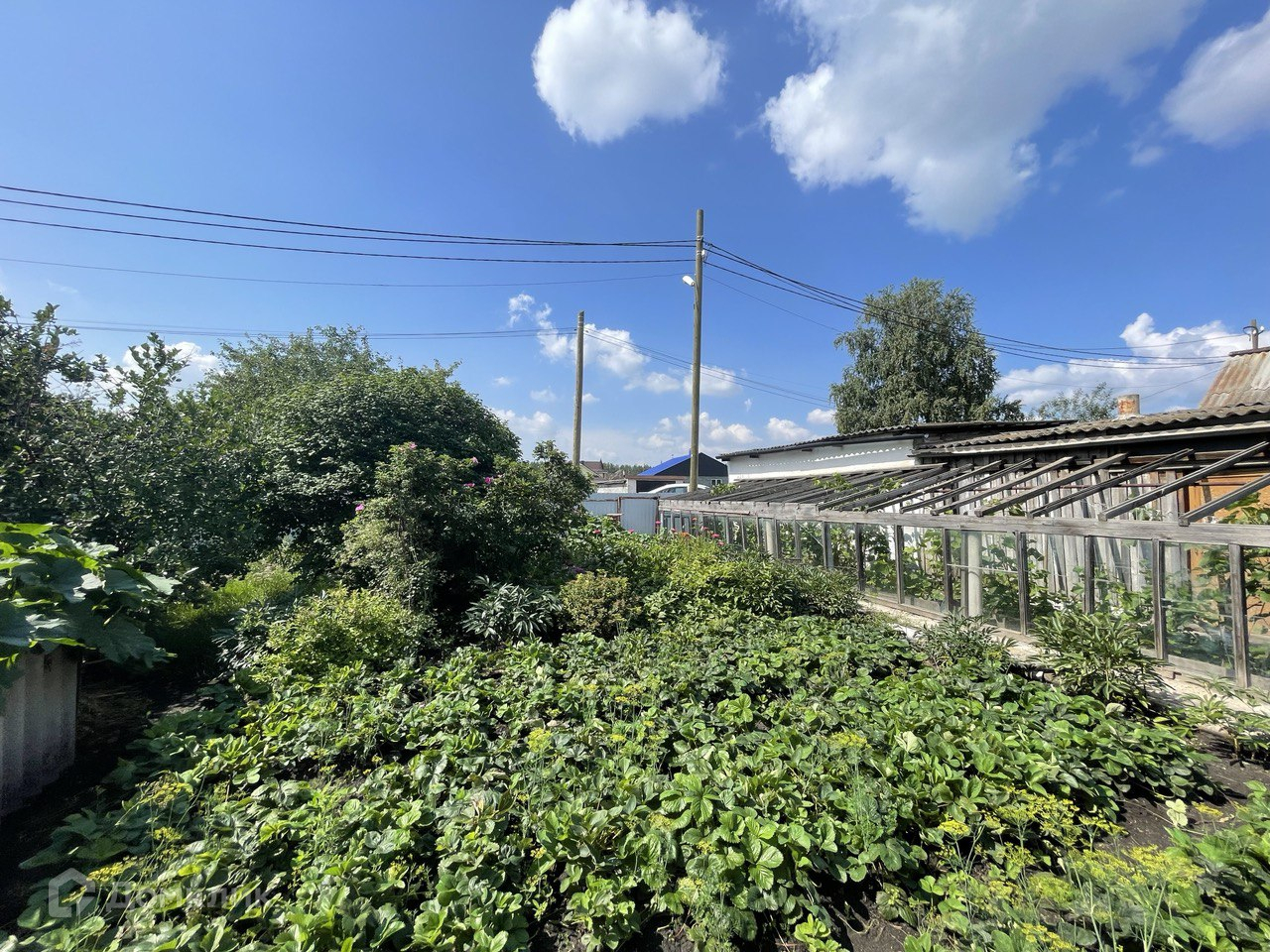 Дом расположен на просторном, разработанном, засаженном плодово-ягодными культурами участке площадью 1178 кв.м.. Также на участке расположена теплица.