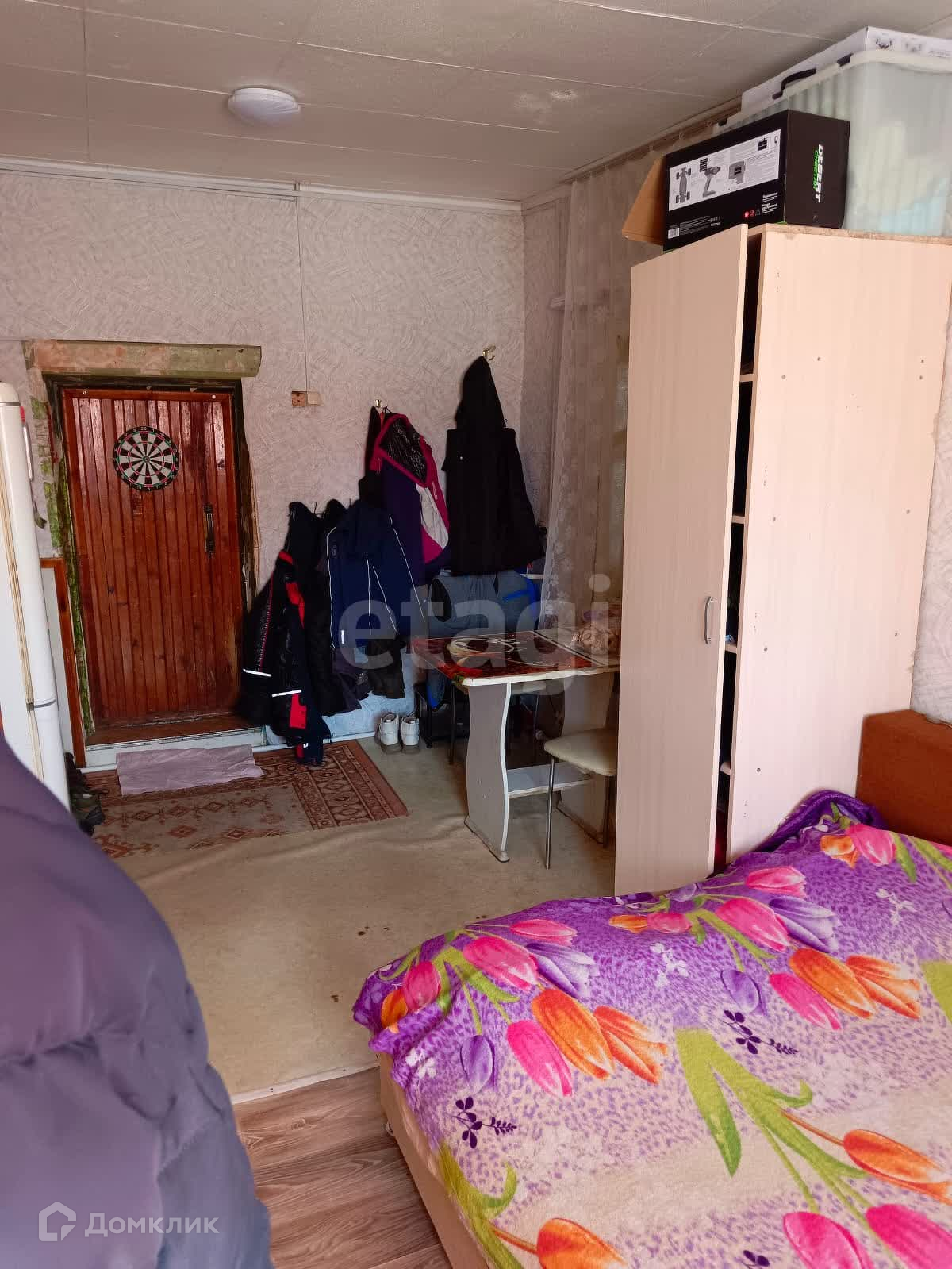 Продам дом в г. Сухой Лог 23,9 кв. м на участке 8,3 сотки земли по улице 93 Стрелковой Бригады. Дом стоит на фундаменте, построен из бревен, крыша шифер . Состоит из одной комнаты, кухни и веранды. Дверь - деревянная, стены – обои , потолок- обшит гипсокартоном , окна (2 деревянные и 2 пластиковые) , полы – линолеум, крыша- шифер. Отопление электрическое и печное, вода скважина (заведена в дом). Туалет на улице.