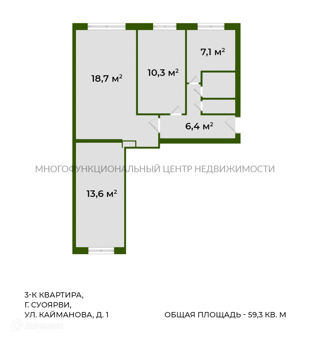 Общая площадь 59.3 м2