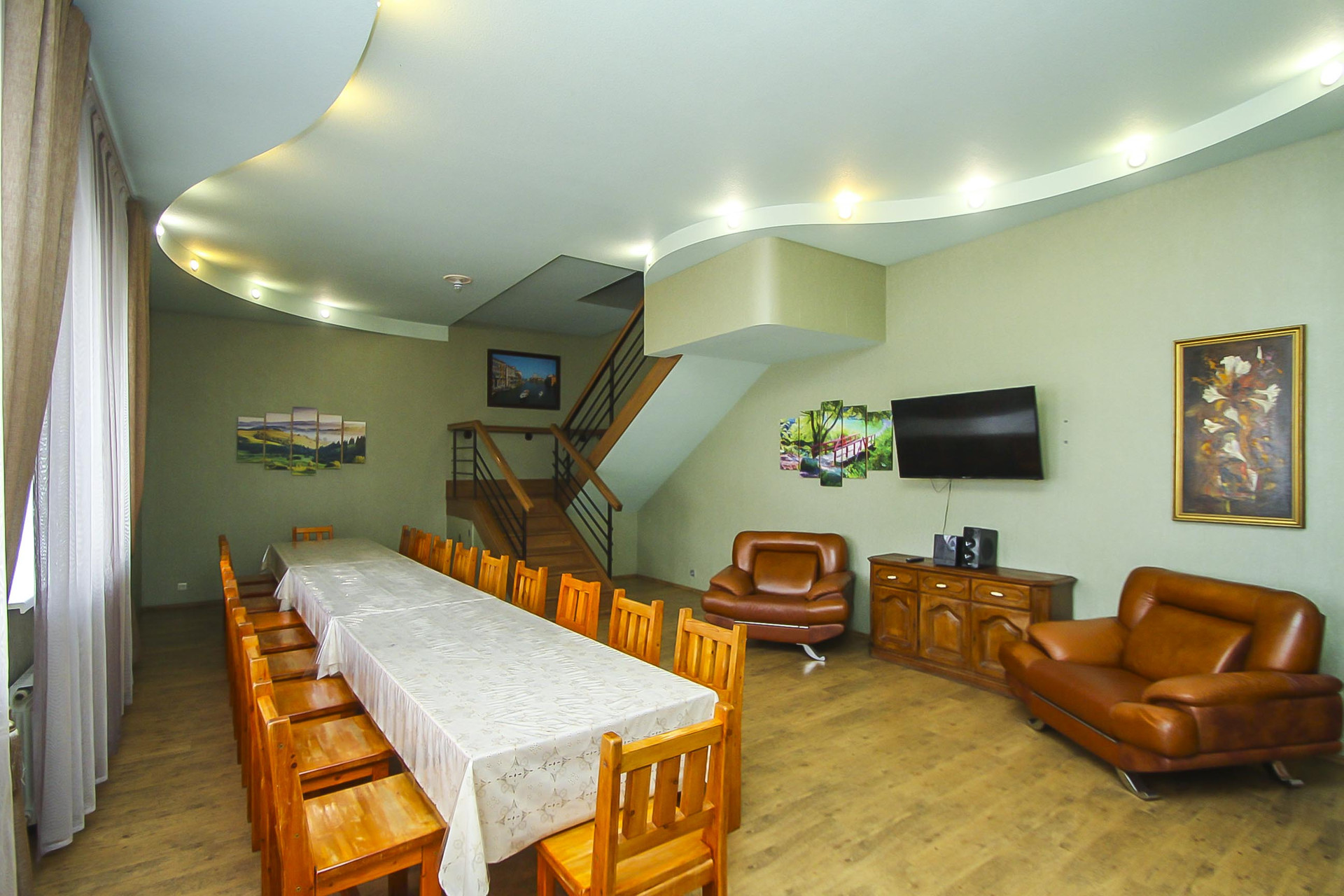 2 ЭТАЖ: -Две спальни, кабинет, кухня-гостиная, с/у, большой банкетный зал (высота потолков 3.20м)