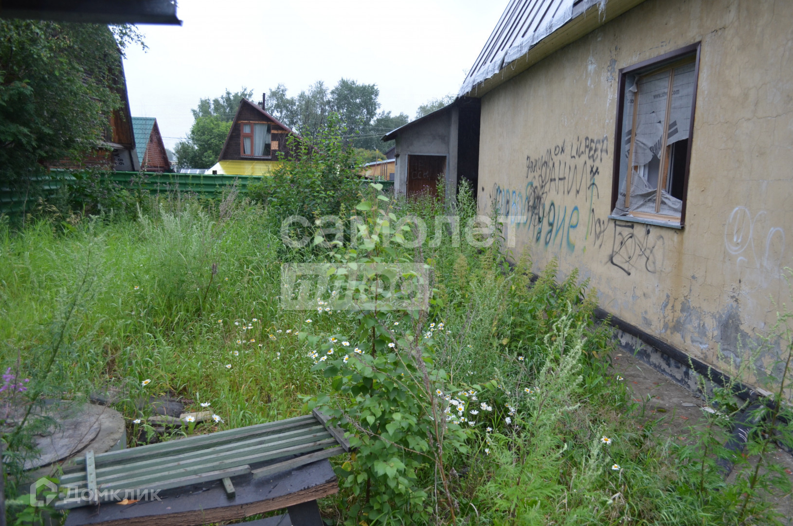 К дому примыкает гараж с заездом с улицы, два входа с двух сторон в дом, а так же из гаража. На участке имеется банька, требующая обновления, сам участок огорожен сеткой рабицей.
