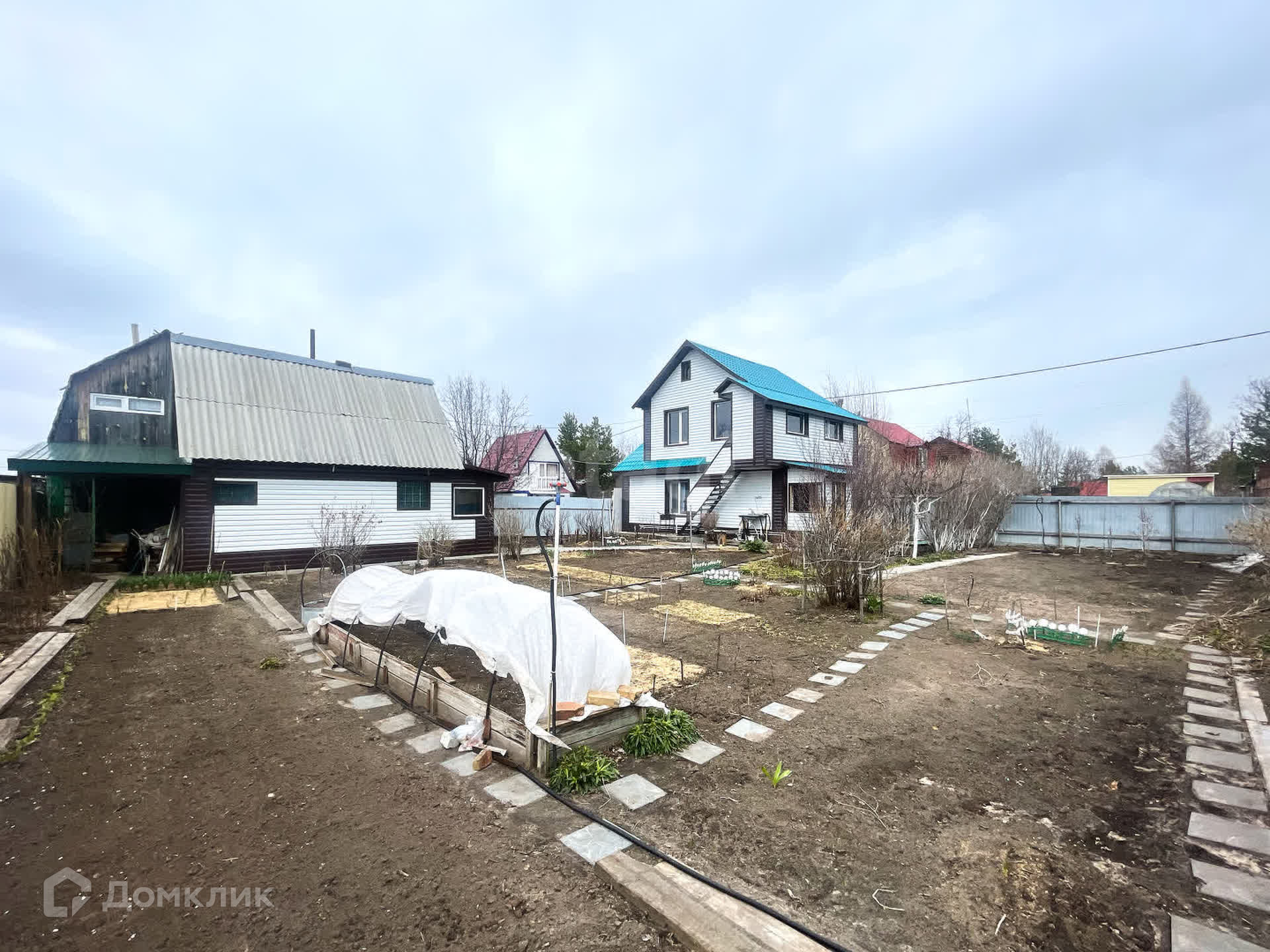 Огород разработан. Растёт смородина, крыжовник, малина, черёмуха, калина, ирга, черноплодная рябина.
