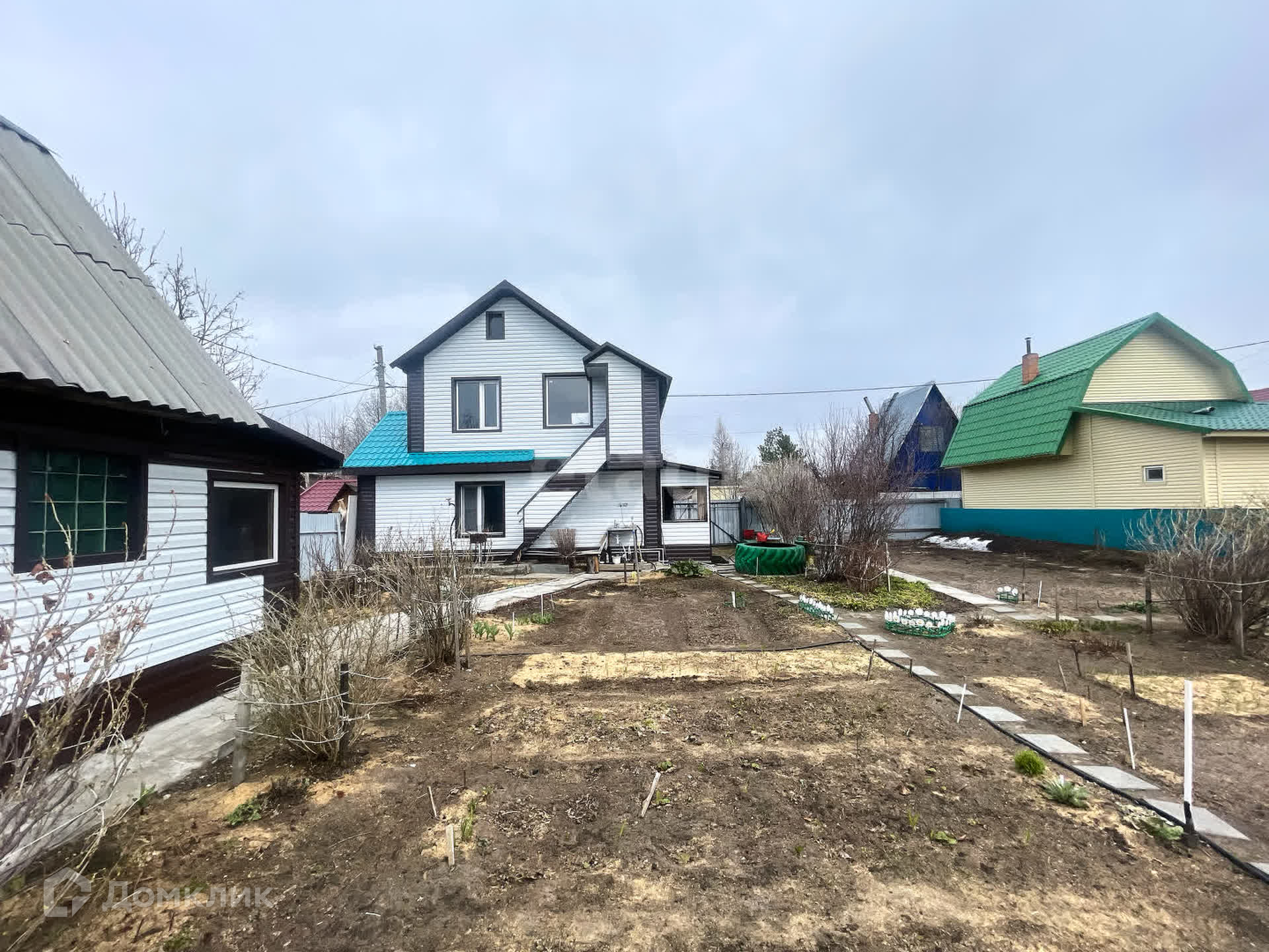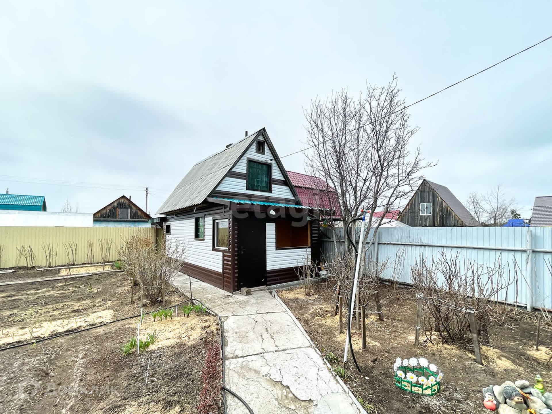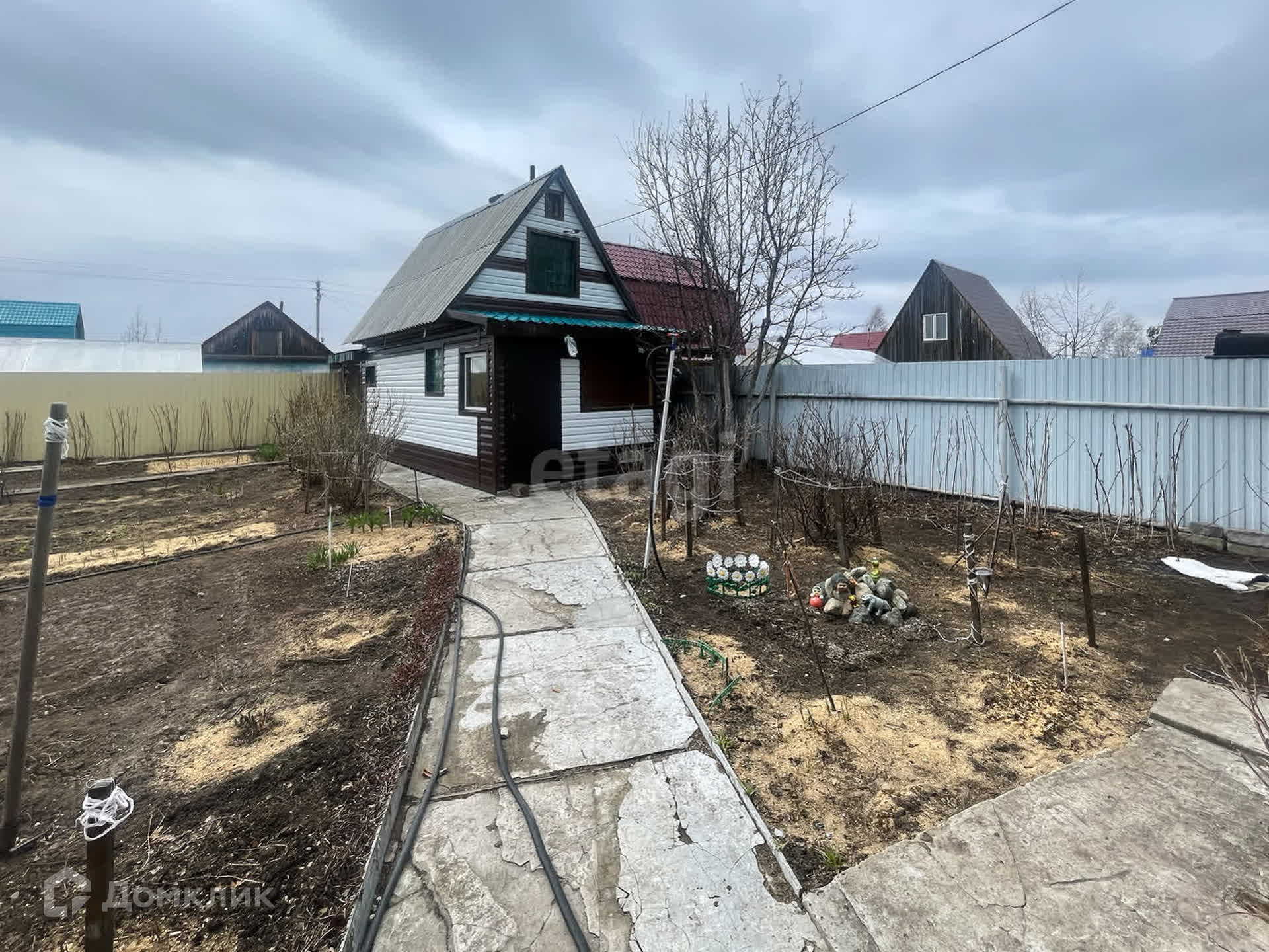 Участок 5,9 соток. Огорожен со всех сторон забором из профлиста. Распашные ворота. На участке находится дом, баня, сарай.