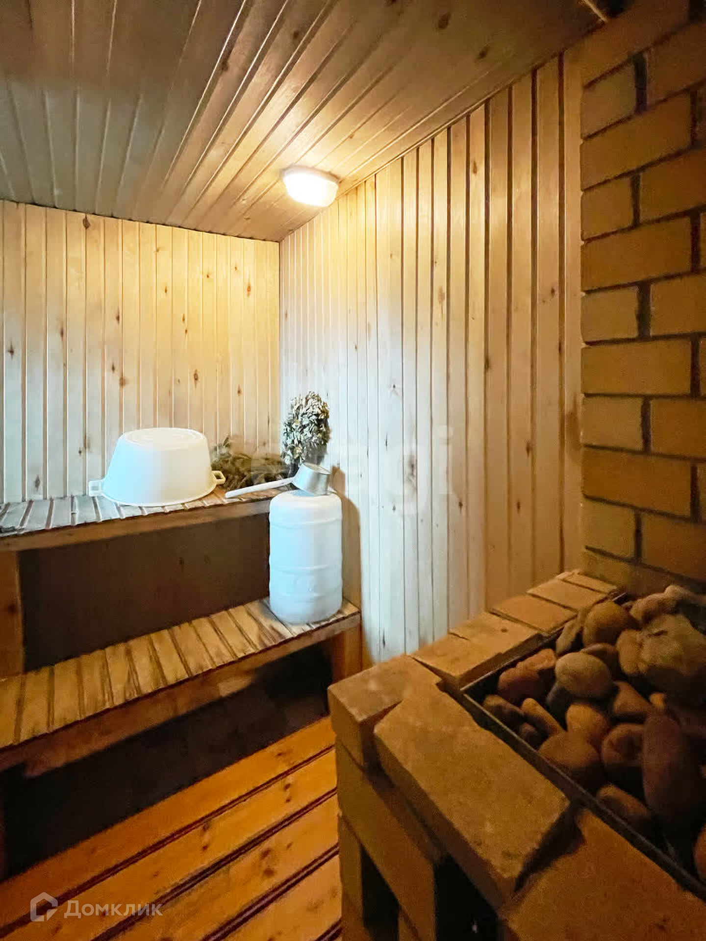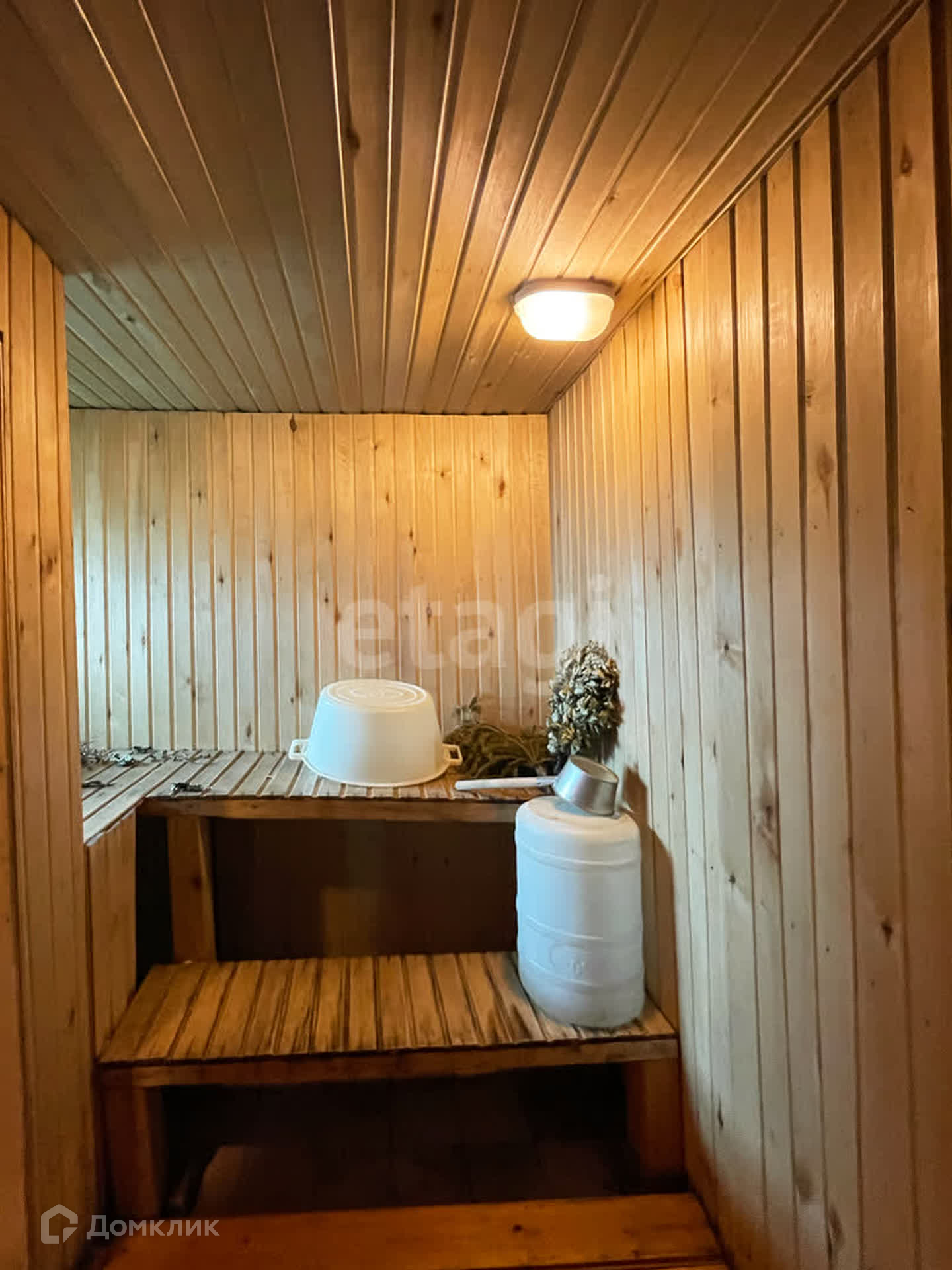 Также на участке имеется баня, выполнена из керамзитобетонных блоков. Крыша - шифер. Дровяная печь.