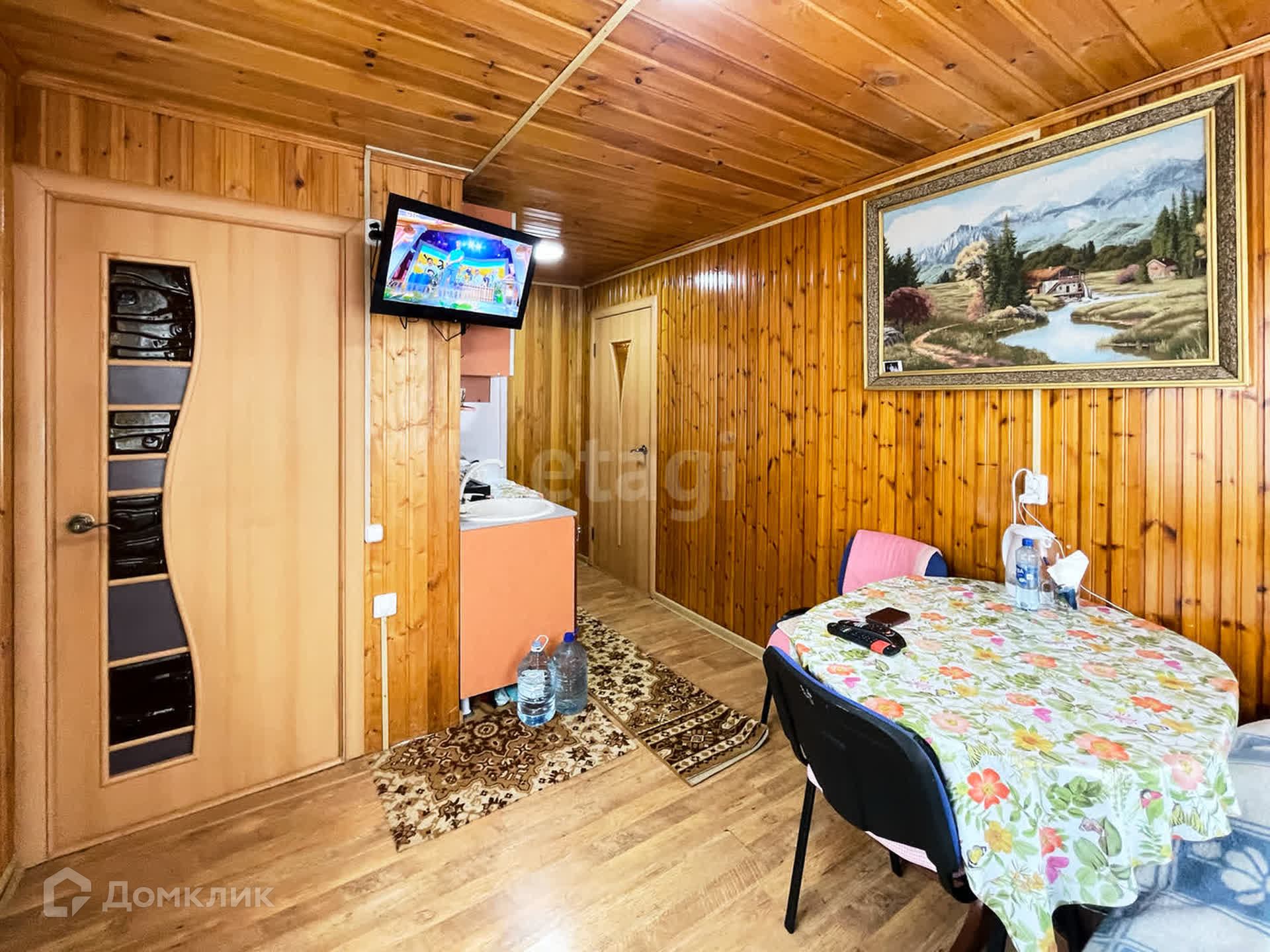 На первом этаже находится кухня и ещё одна жилая комната. На полу ламинат. Установлен бойлер. Есть вывод горячей воды даже на улицу! К раковине которая установлена во дворе специально для удобства пользования. В санузле установлена душевая кабина. На втором этаже находится ещё одна, очень просторная жилая комната.