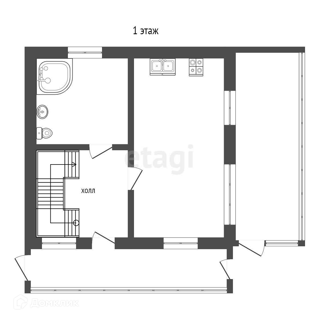 1 этаж: кухня-гостиная, совмещенный сан.узел,