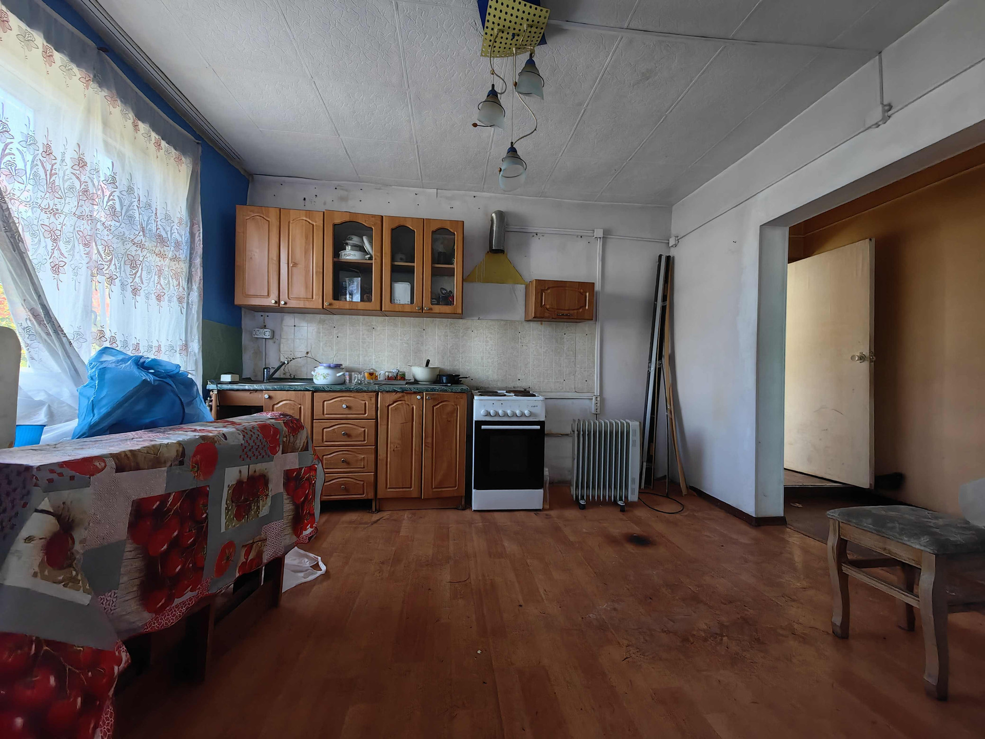 Продается дом с земельным участком, состоящий из 2х этажей, высокий фундамент, 3 отдельные комнаты, кухня - гостиная, сан/узел находится в доме, септик. Требует ремонта. В доме электричество, центральный водопровод, газ проведен по границе участка, можно подключить, в доме электрическое отопление.