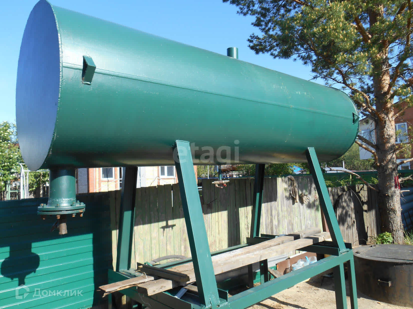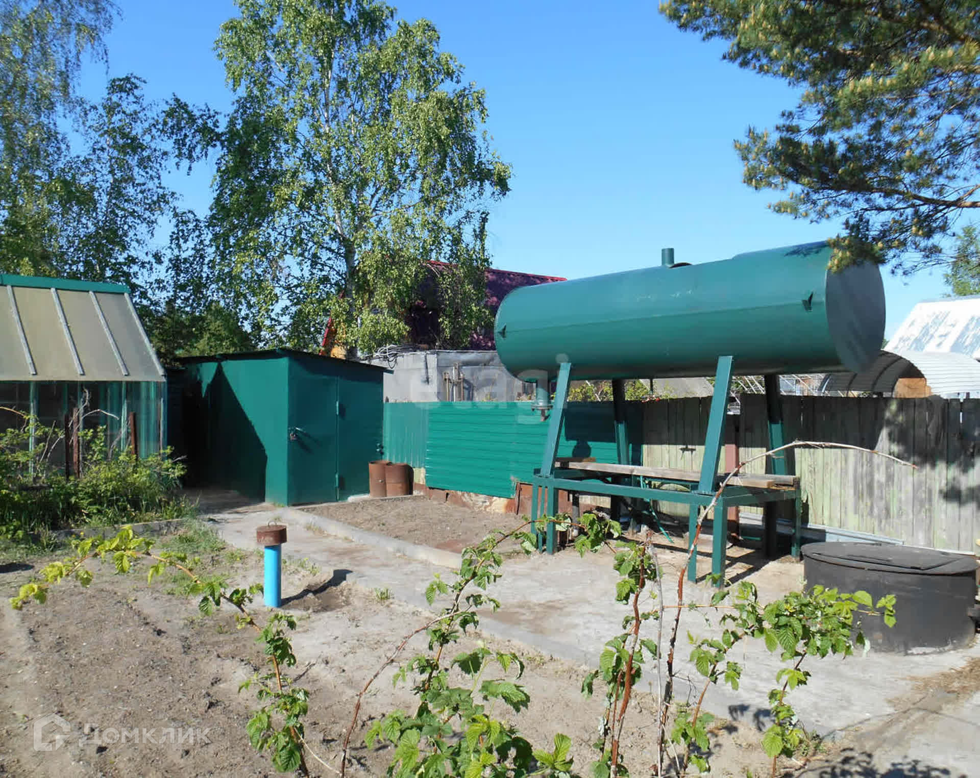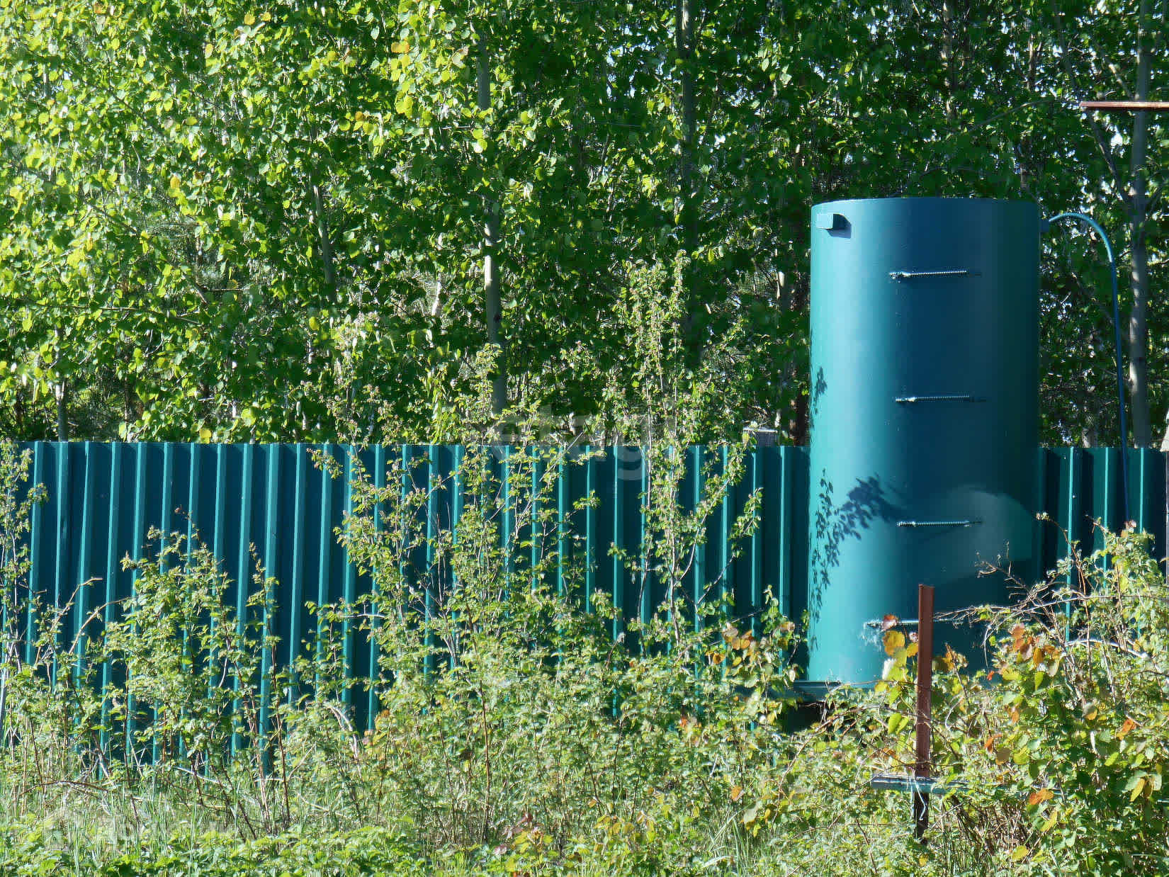 На участке две емкости для воды объемом по 3 куба. Имеется колодец с грунтовой водой из металлической трубы диаметром 150 см. На даче есть и дополнительный источник воды — скважина (пробурена недавно). Земля на участке полностью обработана и завезен грунт.