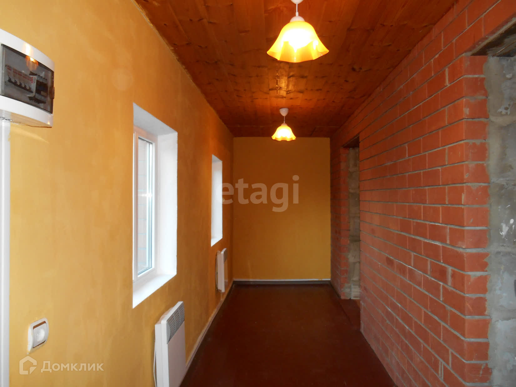 Двухэтажный капитальный кирпичный дом, площадью 79,3 м², на фундаменте 100х100. Дом теплый, пол на первом этаже утеплен керамзитом. Потолки первого и второго этажей также утеплены. Перекрытия между этажами из металлических балок. В доме установлены качественные пластиковые окна фирмы "Барс". Имеется два вида отопления - электрическое и печное. Основательная Металлическая входная дверь также утеплена. Кровля металочерепица. Забор на фундаменте.