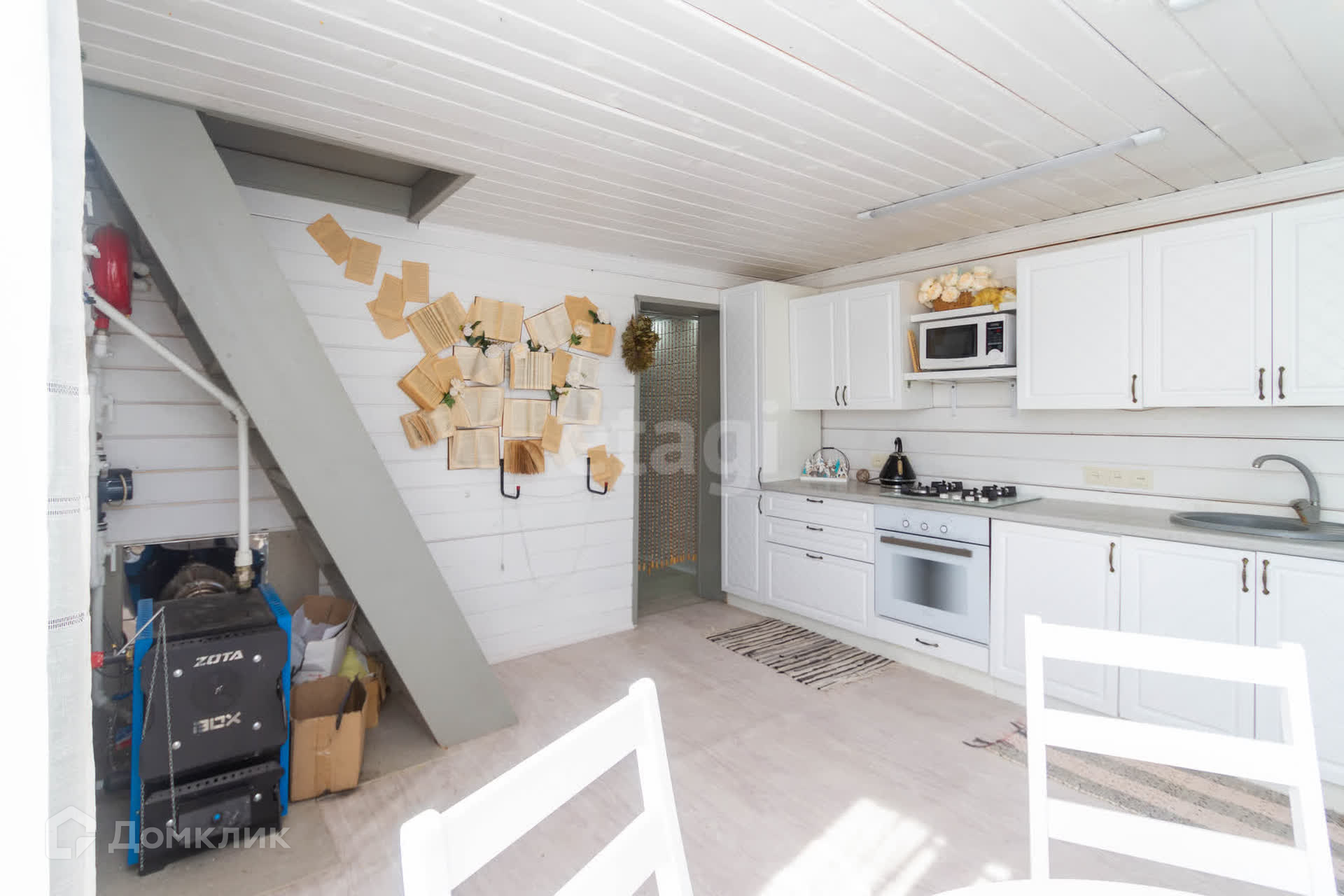 Дом 2 этажный, для круглогодичного проживания. На первом этаже кухня-гостиная, спальная комната и сан узел, на втором одно просторное помещение, при желании можно сделать 2 отдельные комнаты (сейчас идет ремонт). В доме установлен электрический котел, который обогревает оба этажа, на первом везде установлен теплый пол.