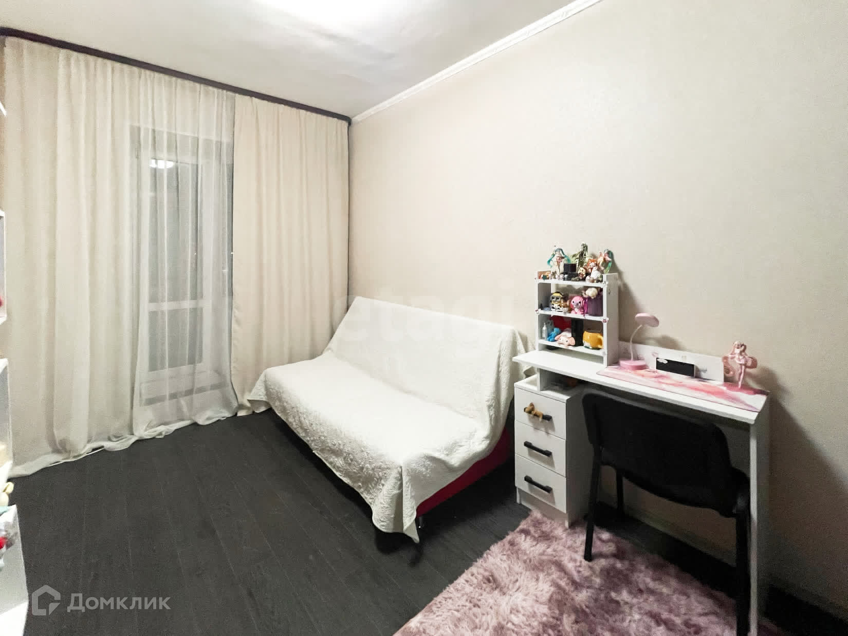 Продаётся уютная комната в светлых тонах со свежим, только что сделанным ремонтом. Что немаловажно в комнате есть балкон. Окна выходят во двор. Балкон застеклён.