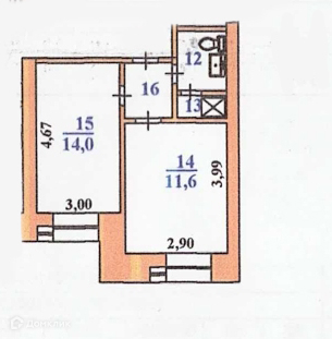 Двухкомнатная квартира в бывшем общежитии, микрорайон ПИКС