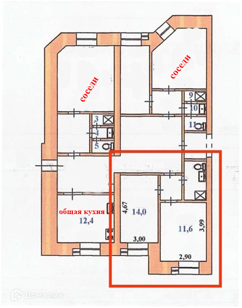 Сама секция на три семьи, большой общий коридор, вместительная кладовка и общая кухня.