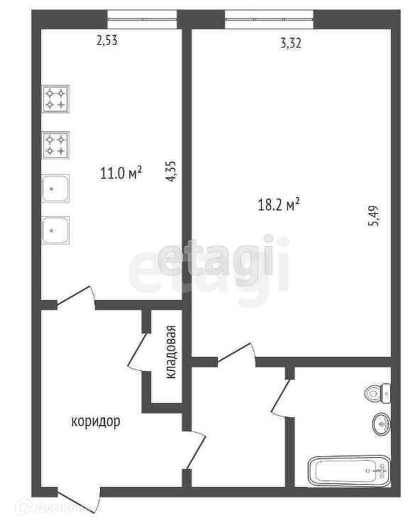 Общая площадь 24.3 м2