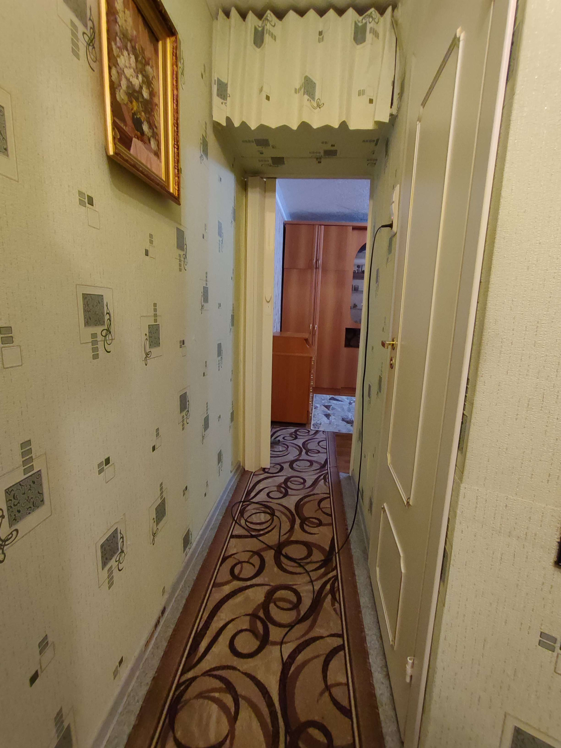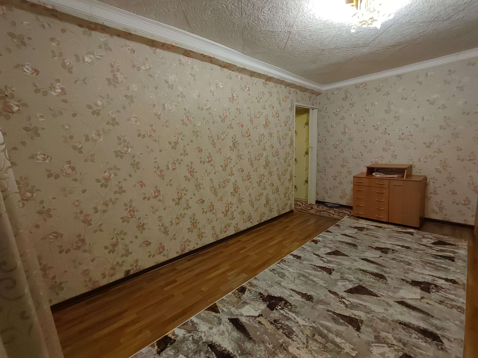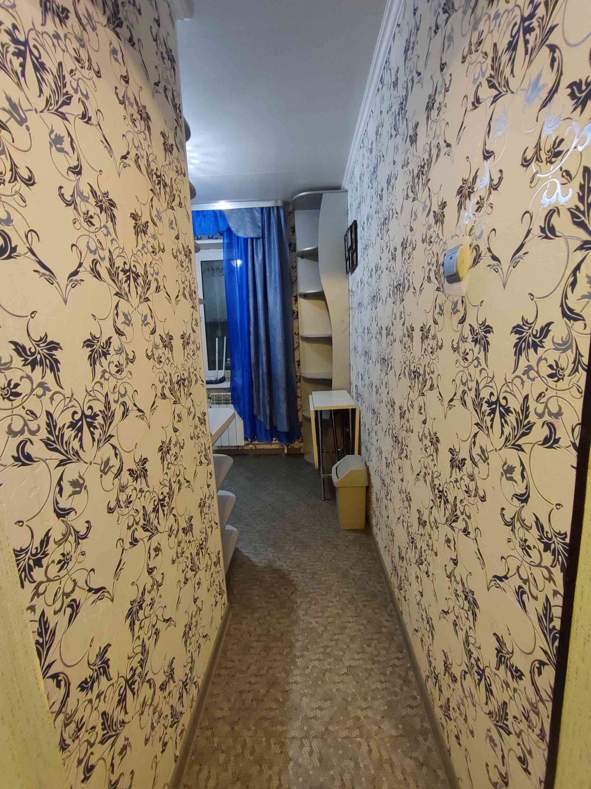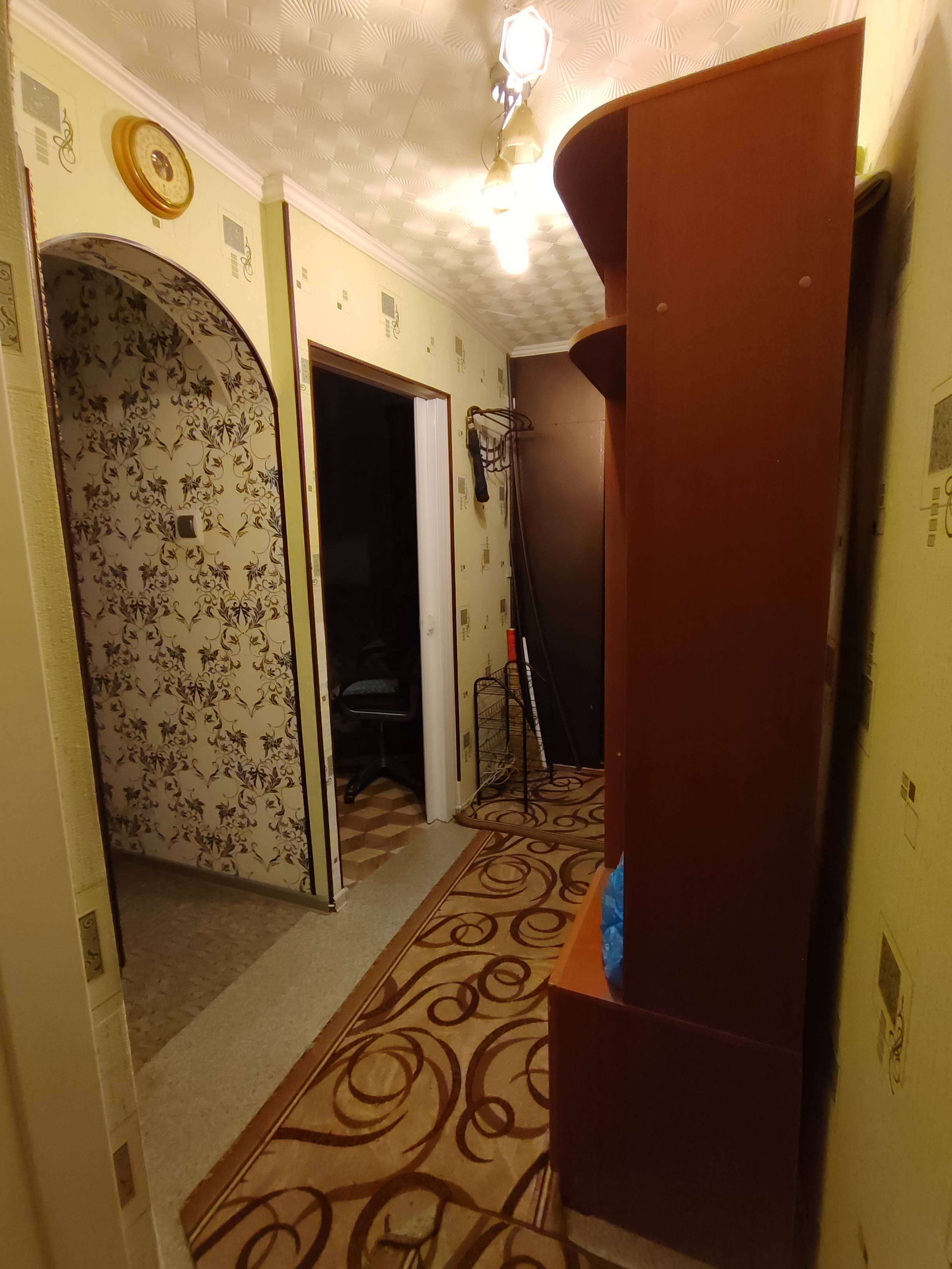 Напольное покрытие линолеум, стены оклеены обоями, навесные потолки, пластиковые окна.