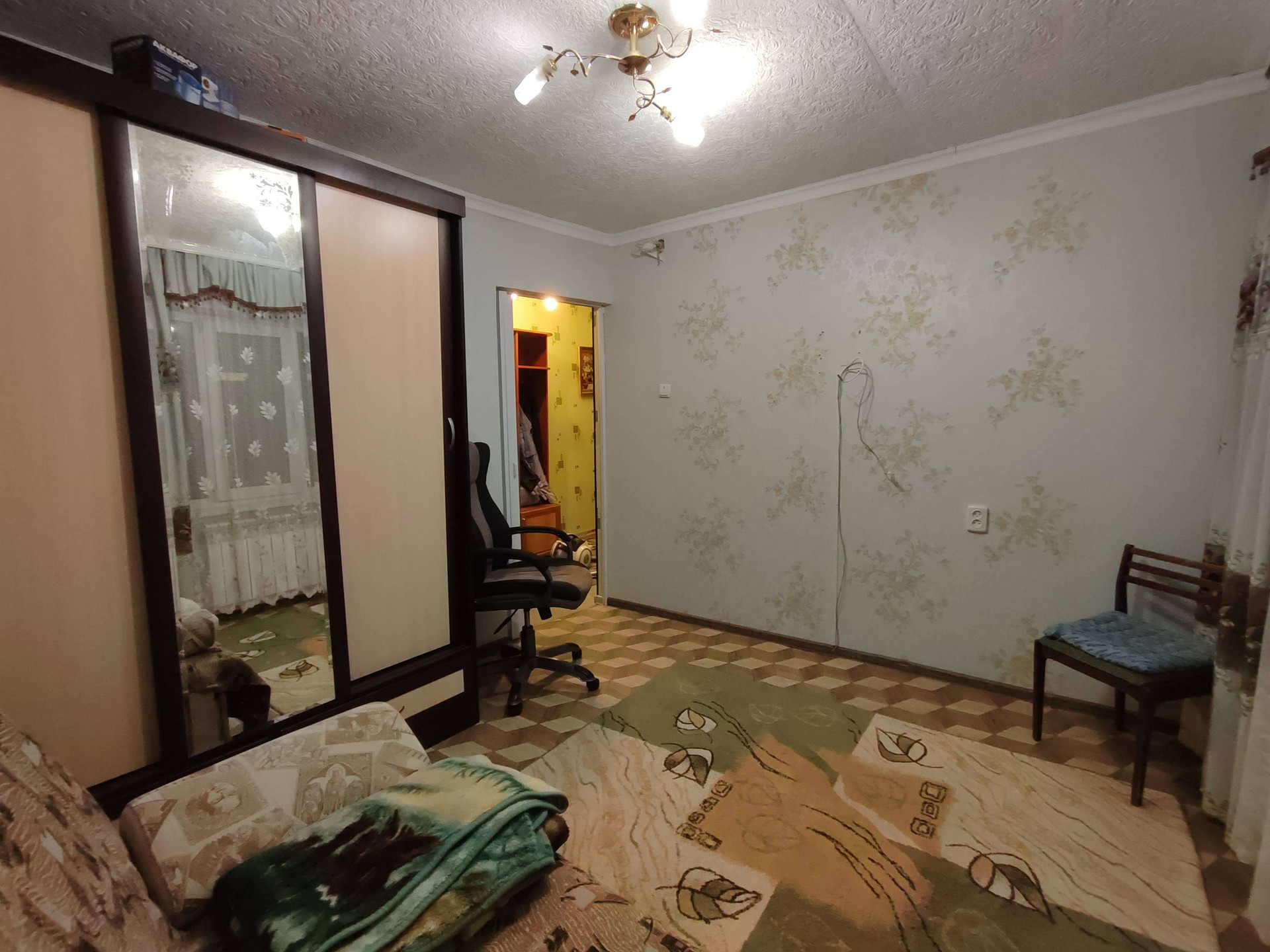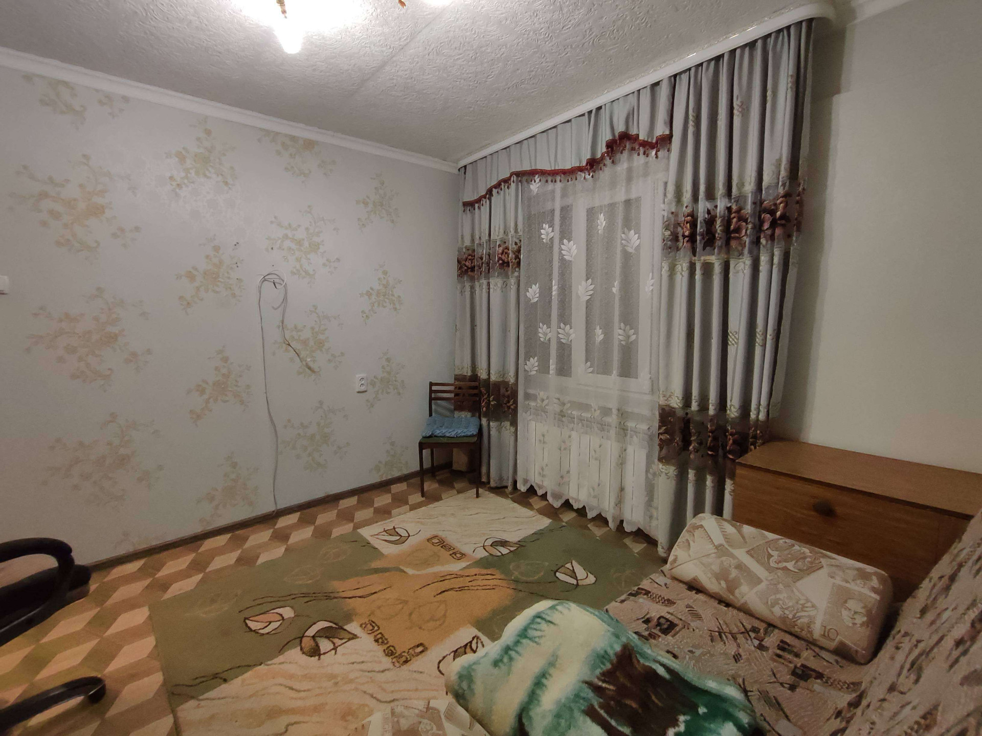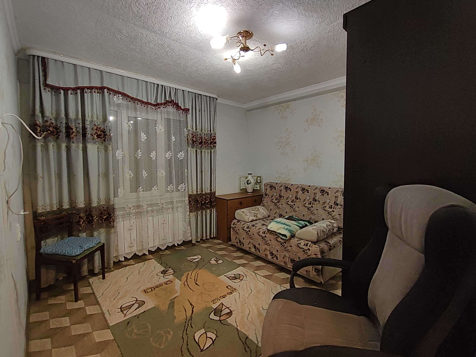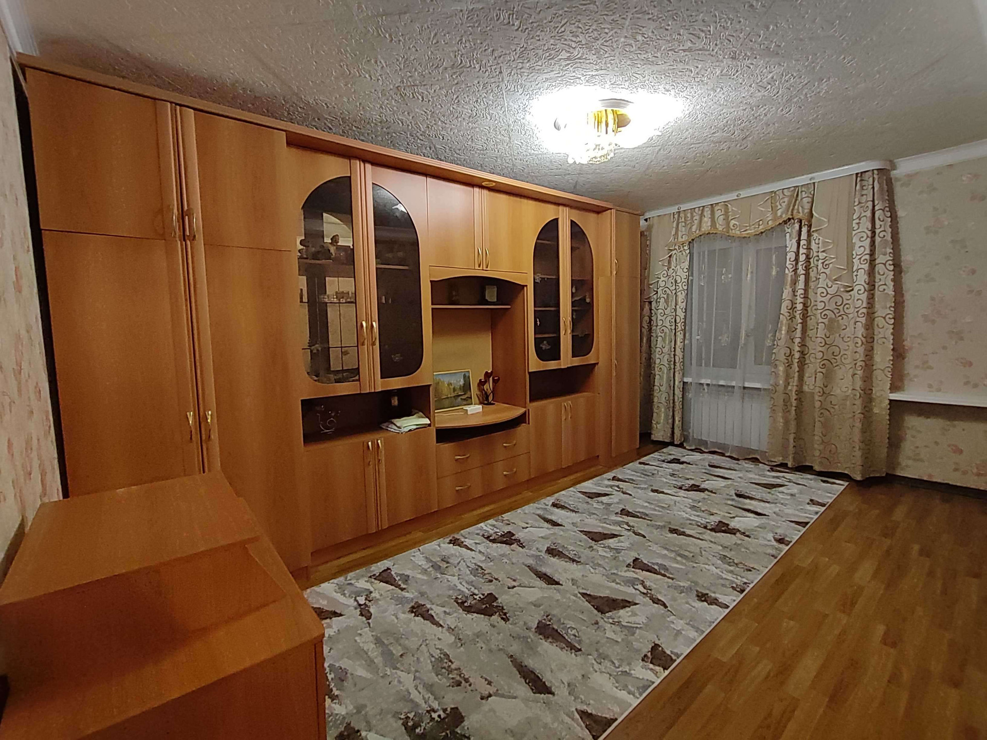 Напольное покрытие линолеум, стены оклеены обоями, навесные потолки, пластиковые окна.