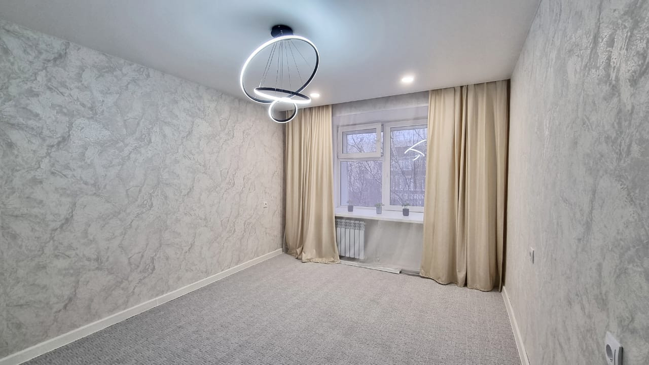 Натяжные потолки, точечные светильники, радиатор отопления биметаллический, окно пластиковое, напольное покрытие ковролин!