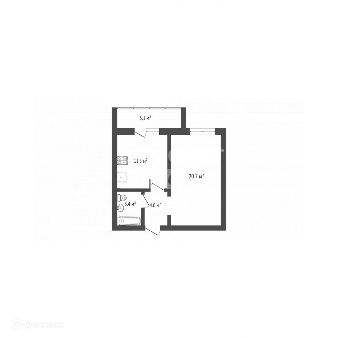 ПЛОЩАДЬ: 39,6 м2 + 5,1 м2(балкон)