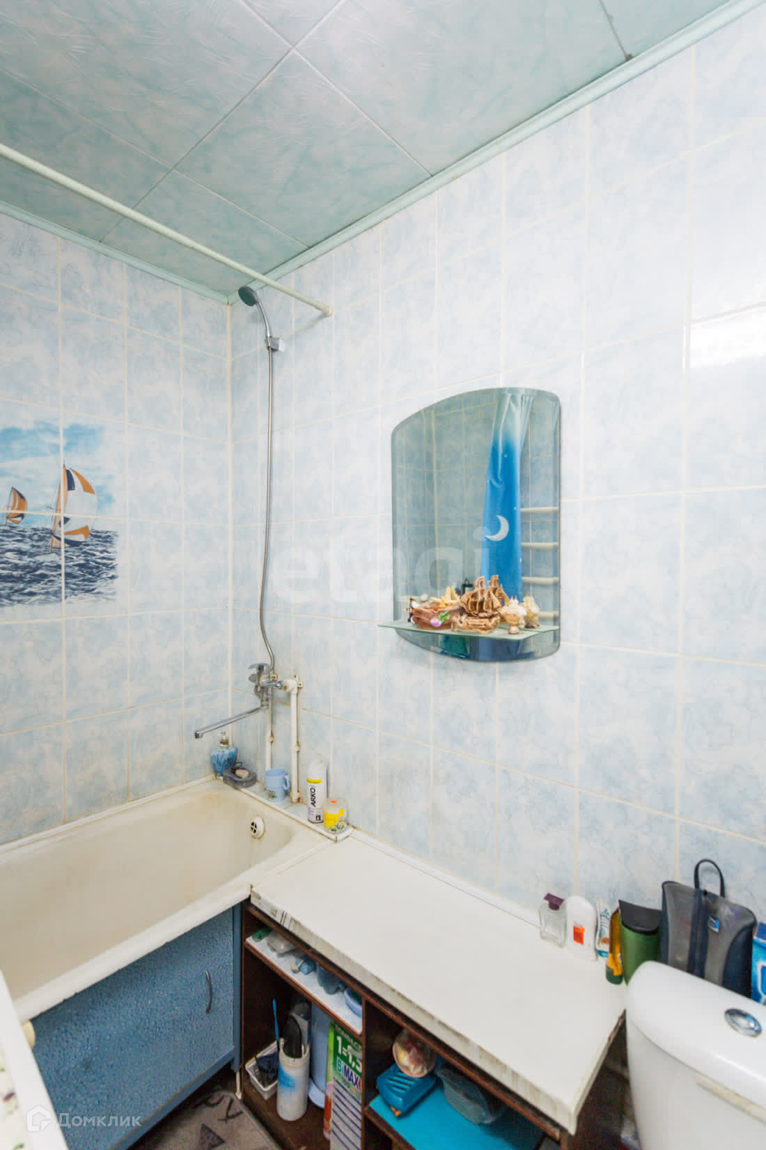 Санузел совмещен, облицован кафелем.