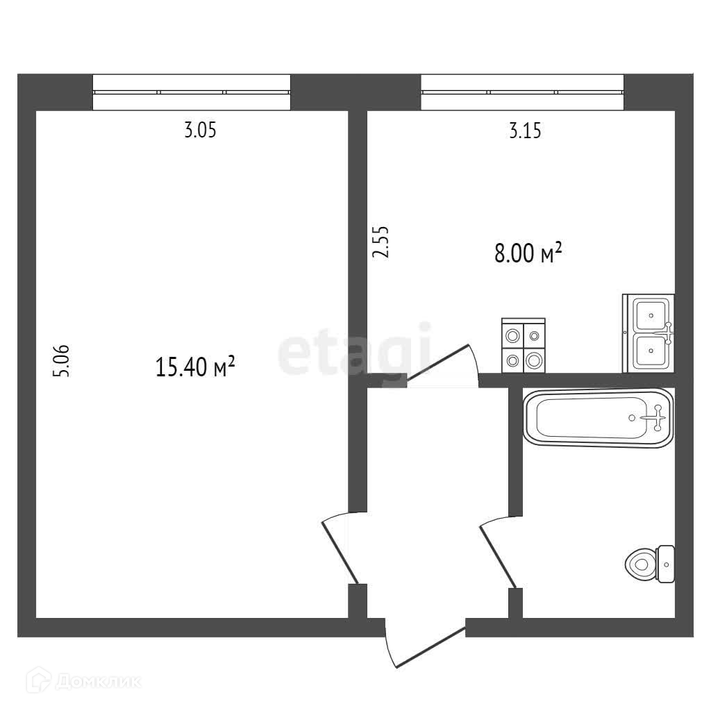 Общая площадь 30.5 м2