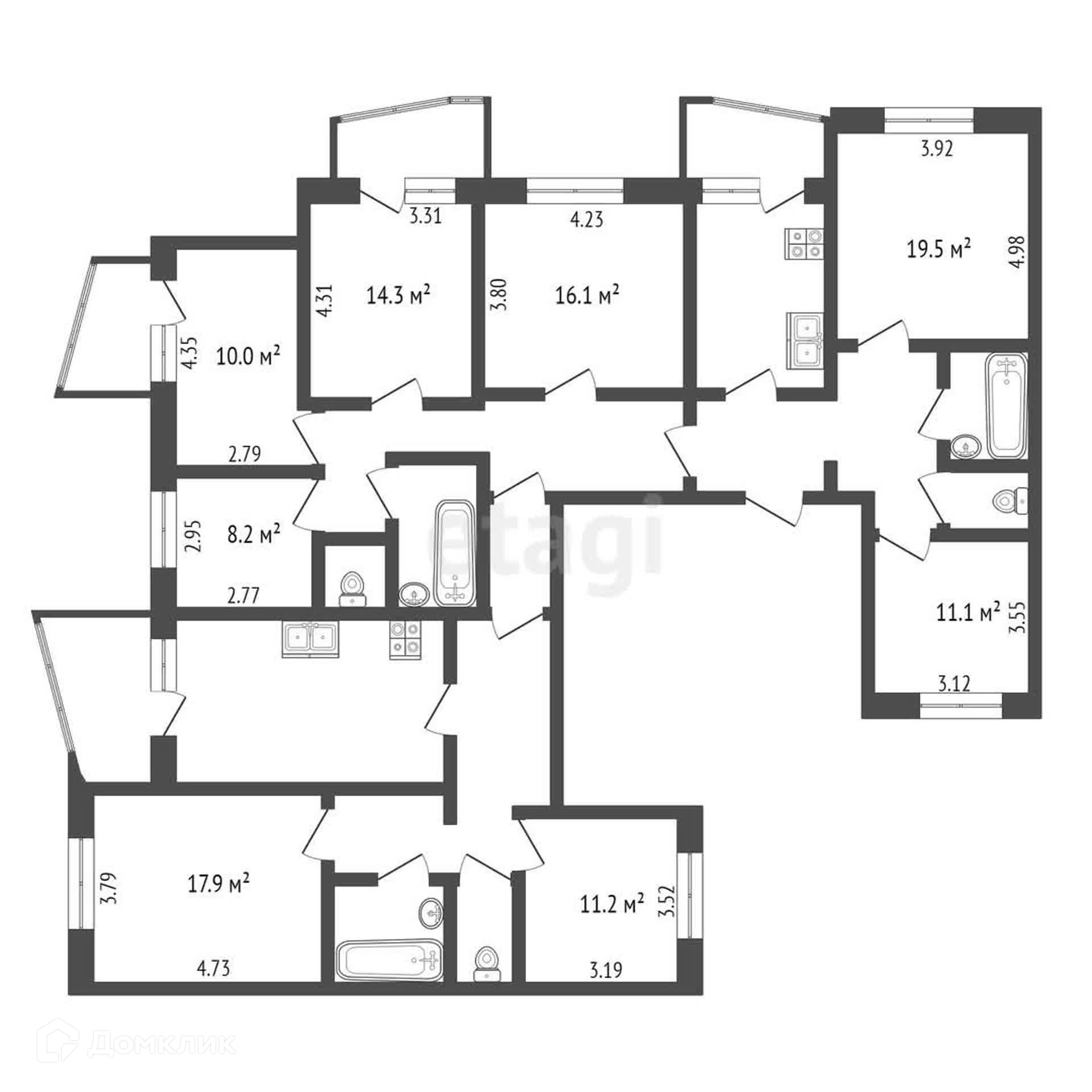 -3 раздельных сан узла;