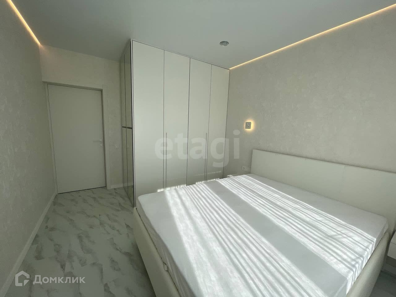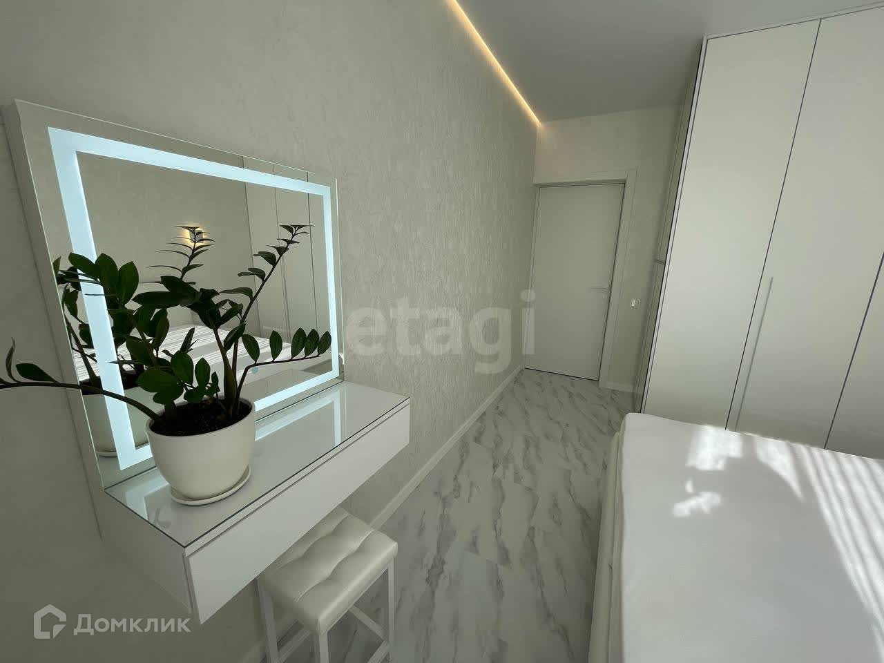 СПАЛЬНЯ: имеет вместительную гардеробную, туалетный столик с подсветкой и выдвижным ящиком от нажатия, большую кровать ORMATEK с ортопедическим матрасом ORMATEK и с огромной нишей для вещей. Две прикроватные подвесные тумбы с выдвижными ящиками от нажатия. Два бра с режимами подсветки и режимами точечного света для чтения. Выключатели возле прикроватной тумбы в том числе проходящие (не надо в вставать чтобы выключить верхний свет либо подсветку).