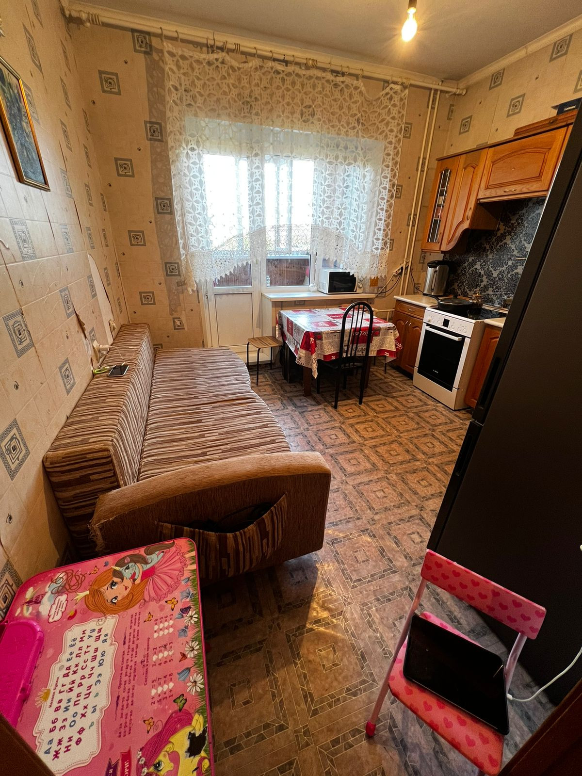 Квартира требует ремонта, что дает вам уникальную возможность обустроить её под свой вкус и потребности. Здесь имеется раздельный санузел и балкон, откуда открывается вид на тихий двор и улицу. Просторная гардеробная!