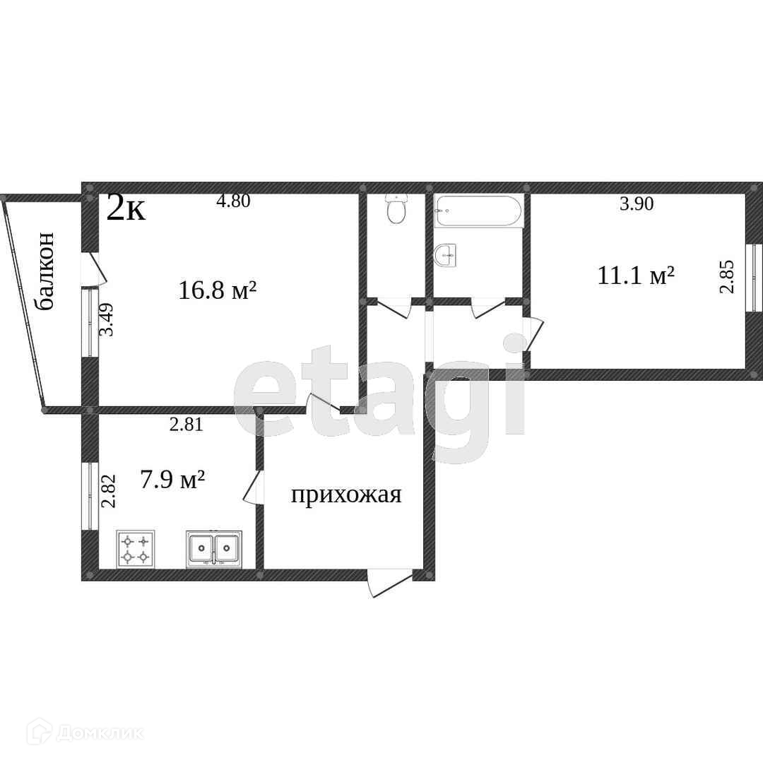Общая площадь 54.2 м2